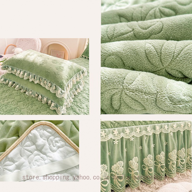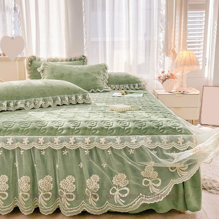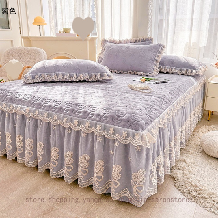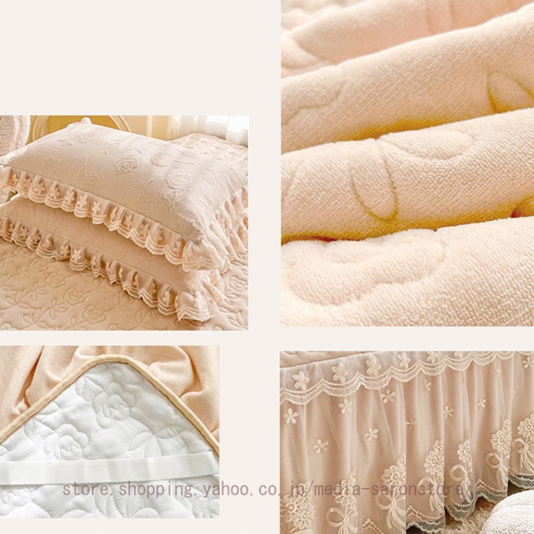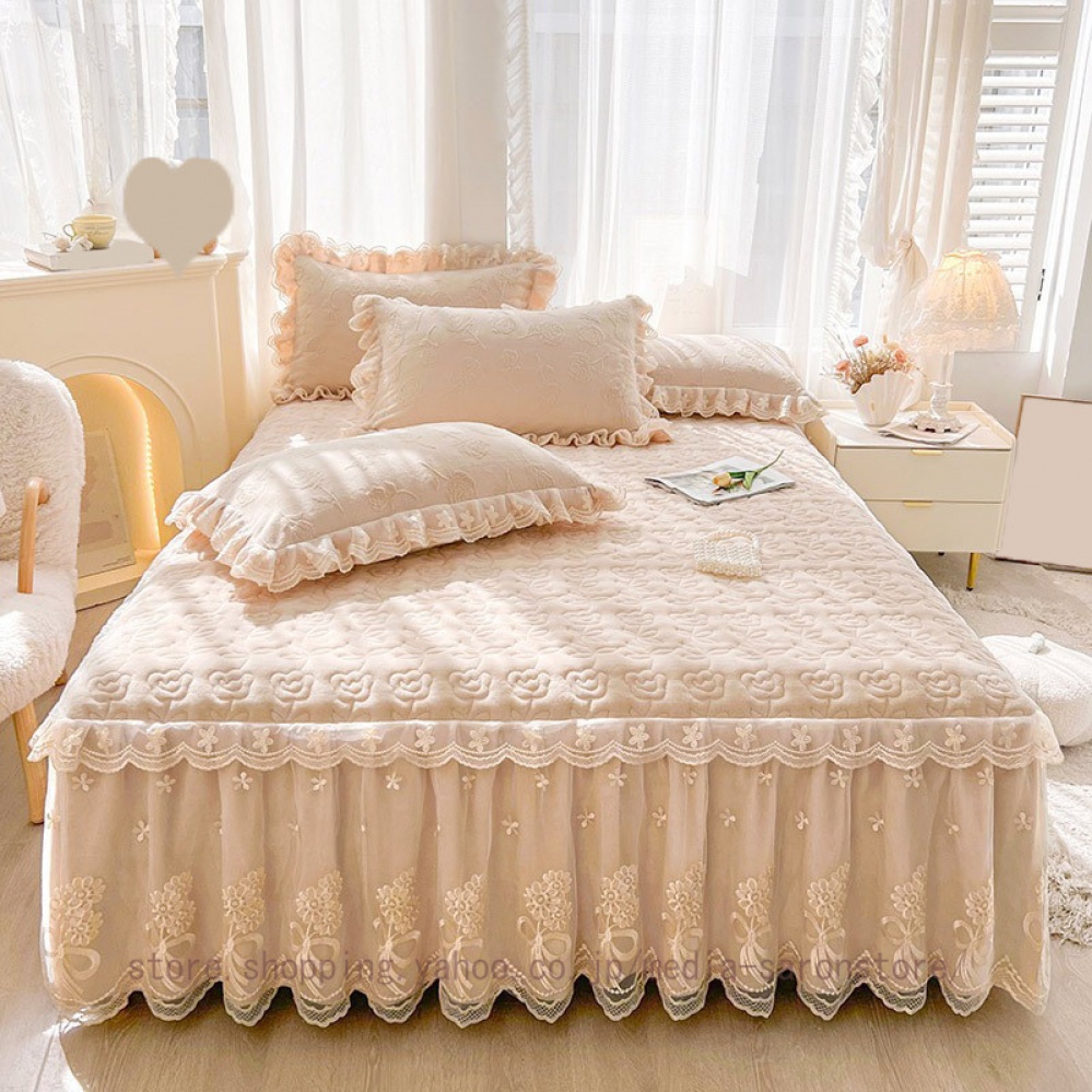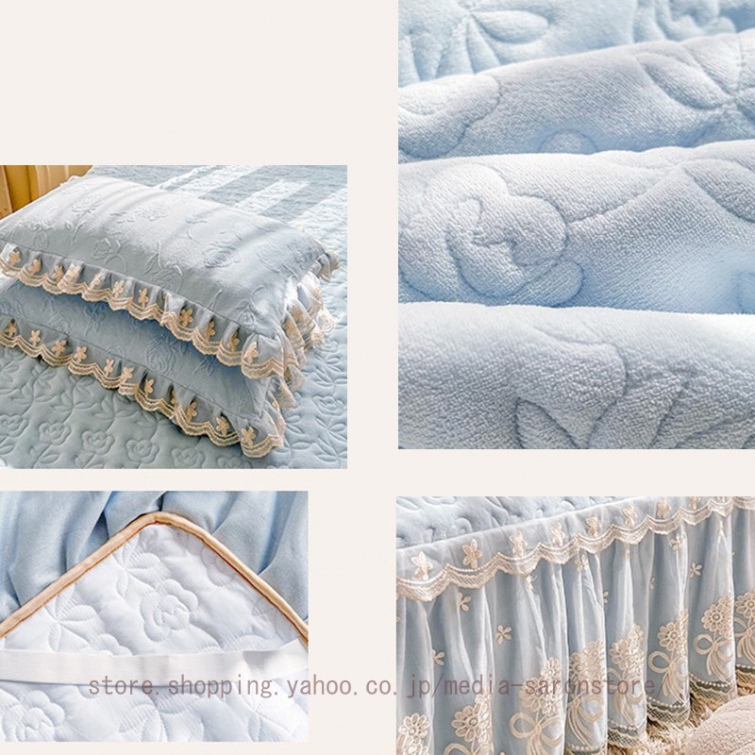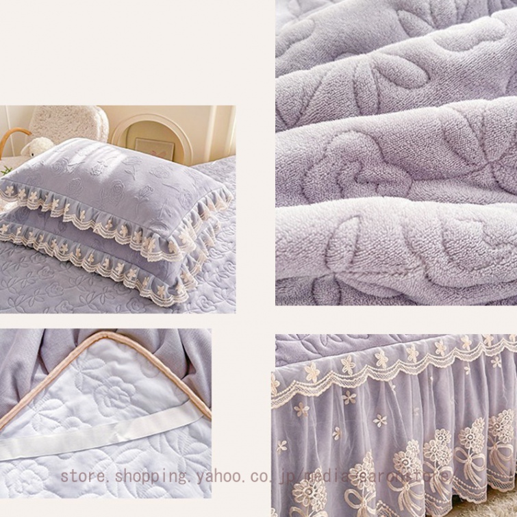 ベッドスカート 綿 キルティング マットレスカバー 枕カバーセット フリル付き 敷パッド一体型 中綿 姫系 ズレ防止 オールシーズン 春 秋 冬 洗える