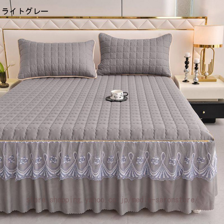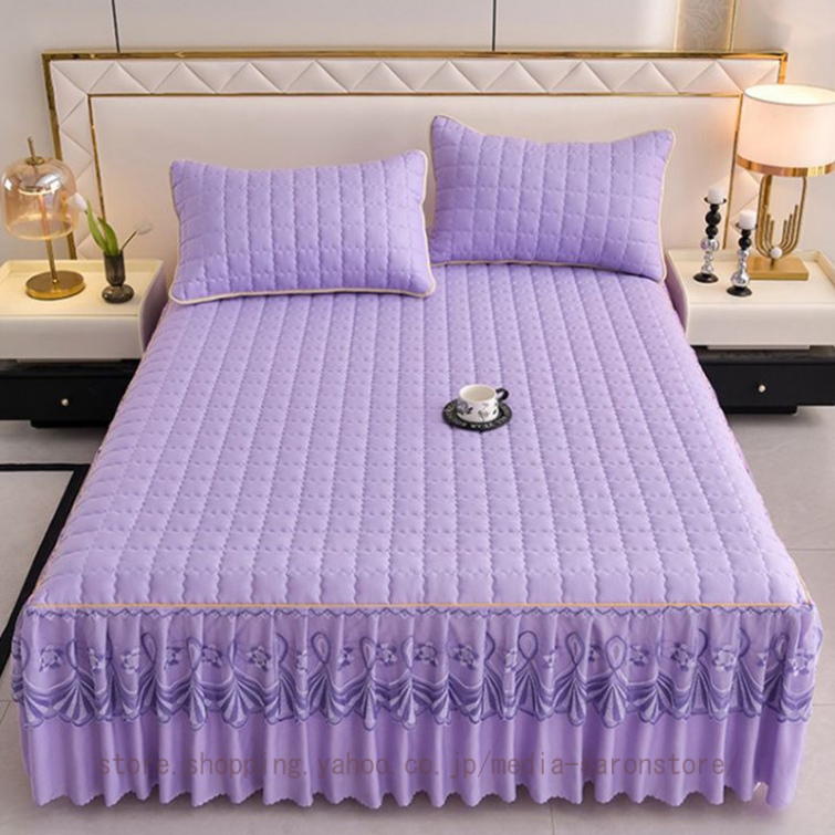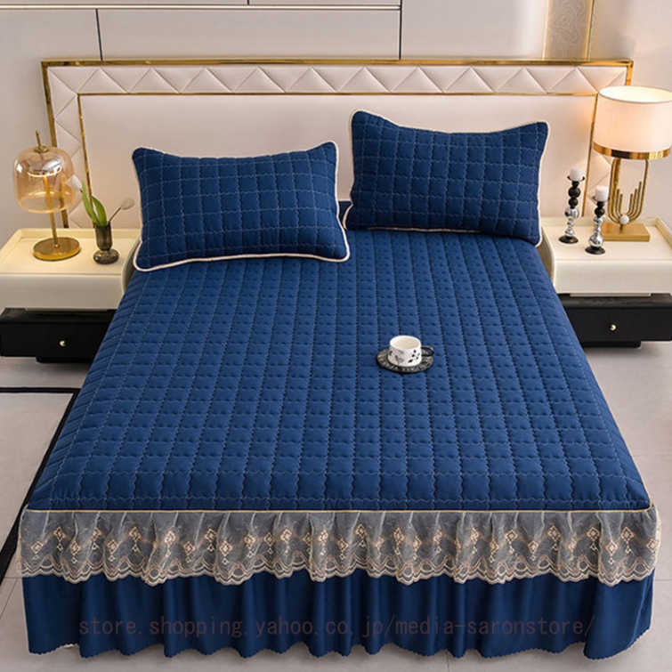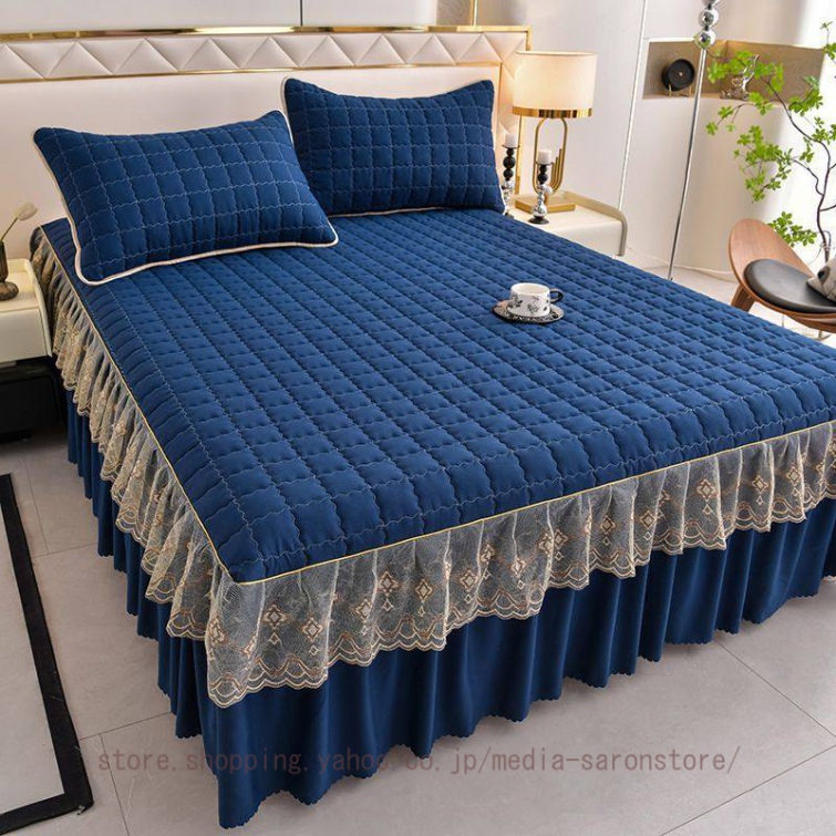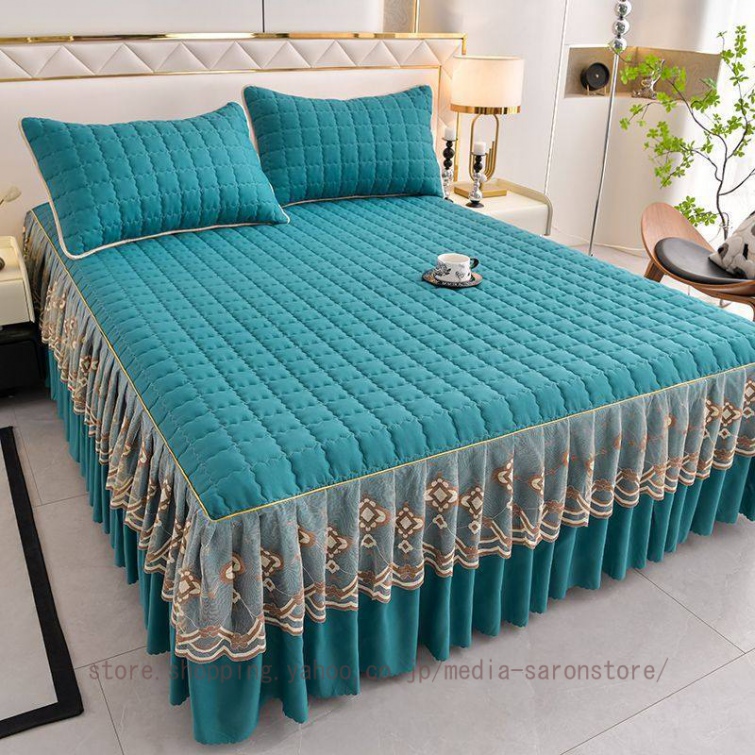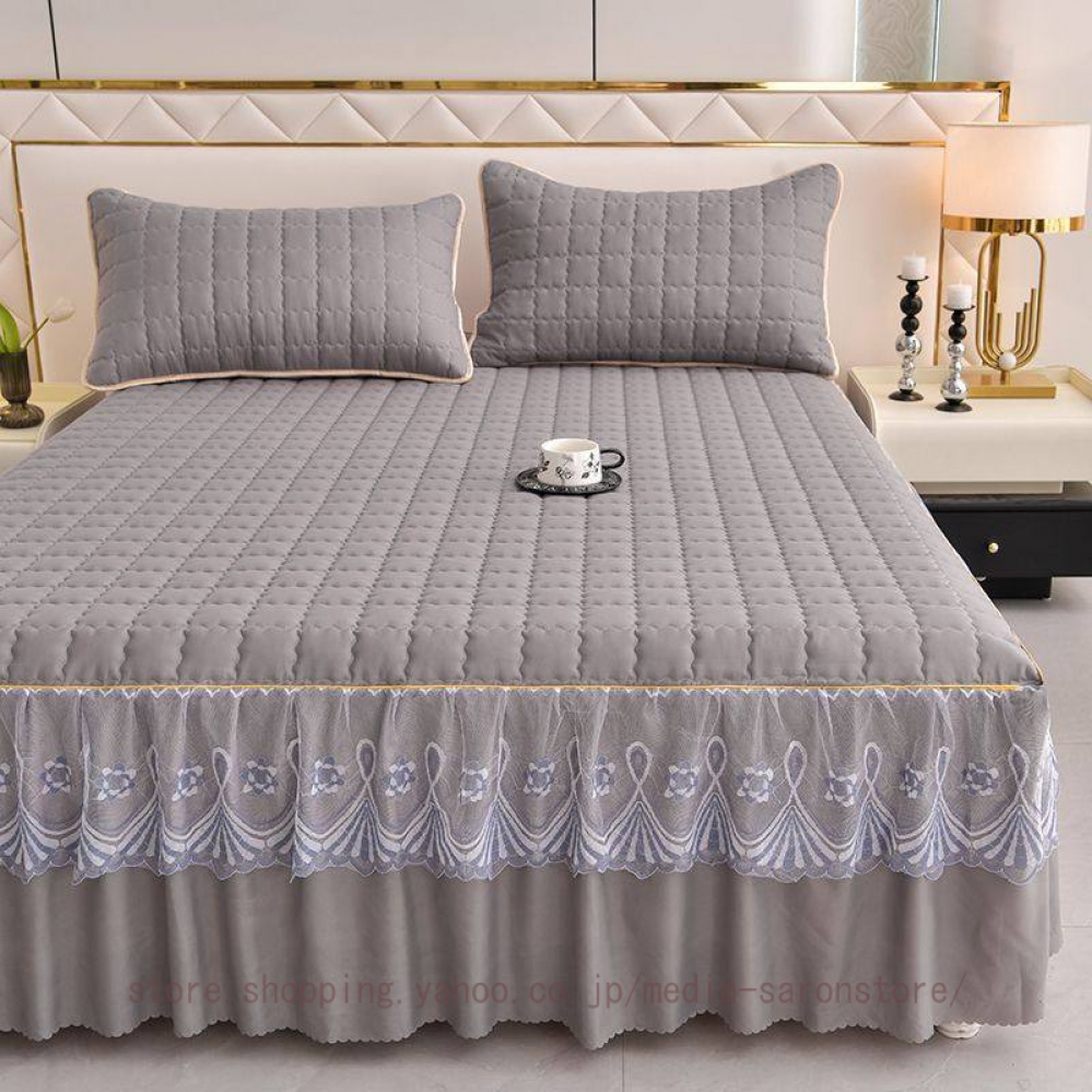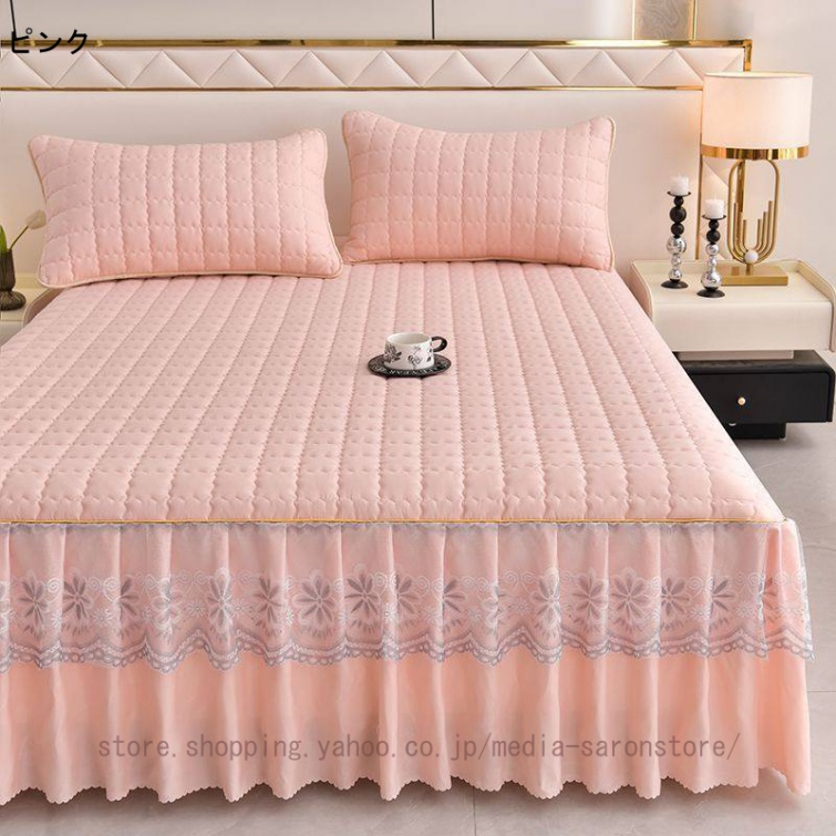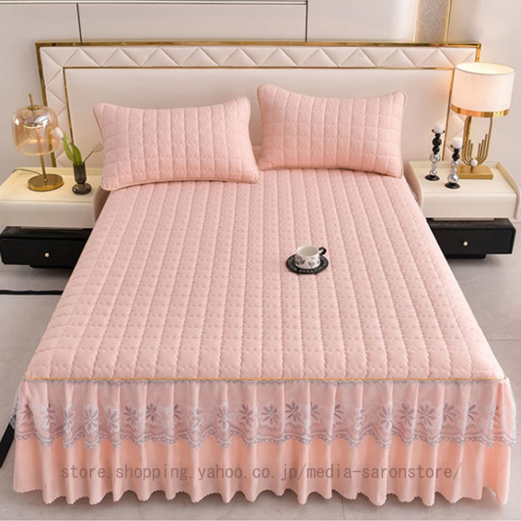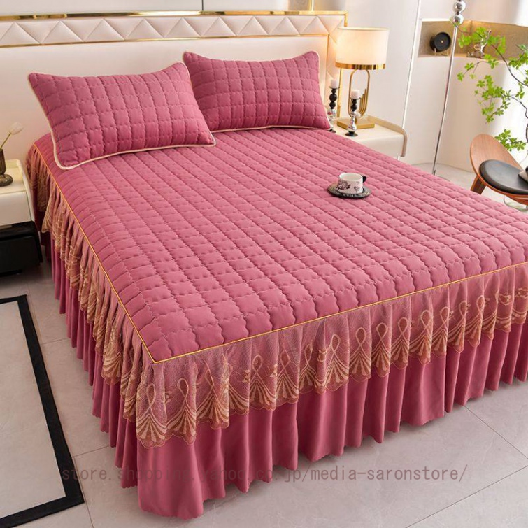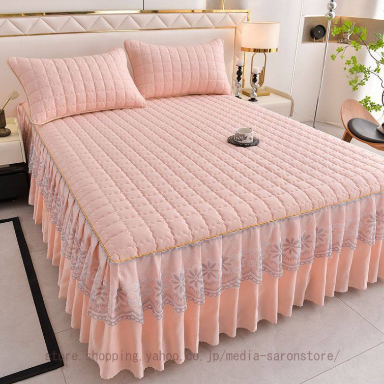 ベッドスカート 中綿ベッドスカート キルティング コットン 綿 丸洗いok 柔らかい シングル セミダブル ダブル きれいめ エレガント 上品 フリル ベッドカバー