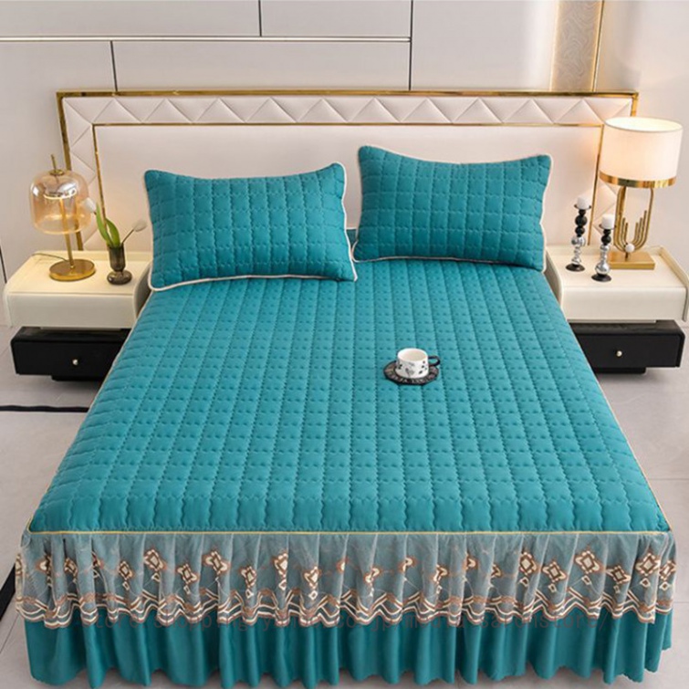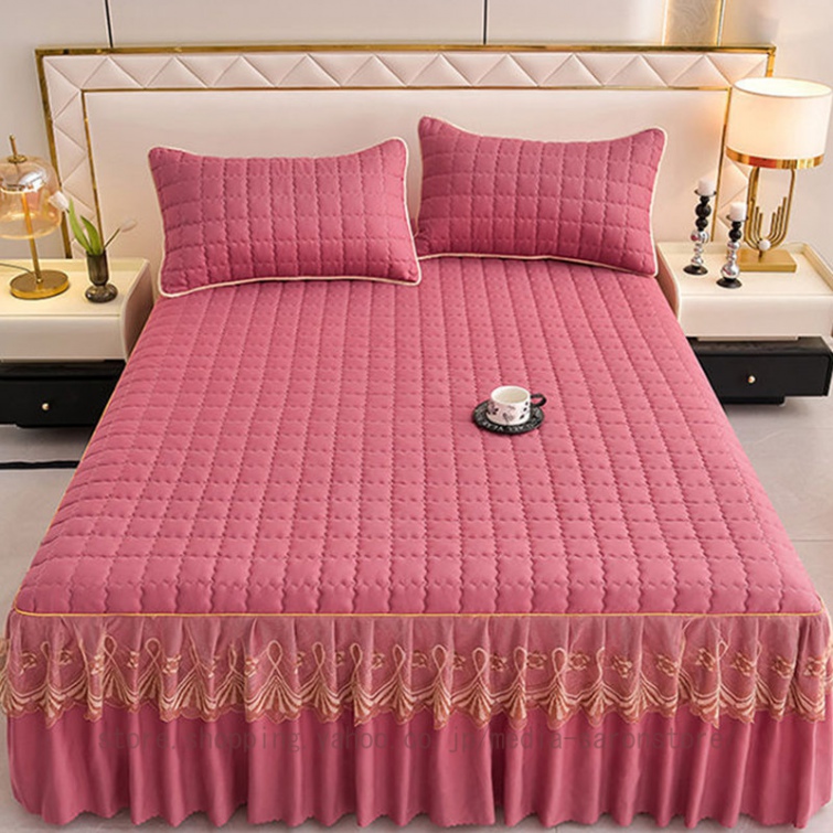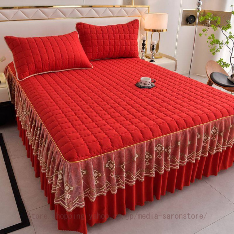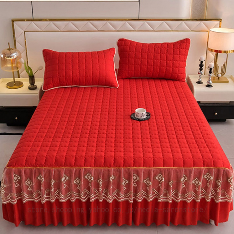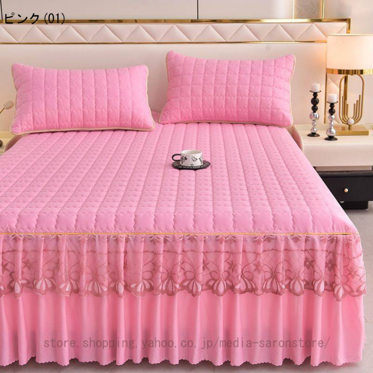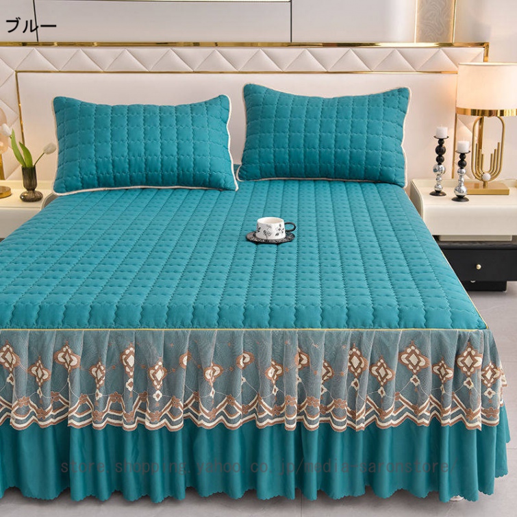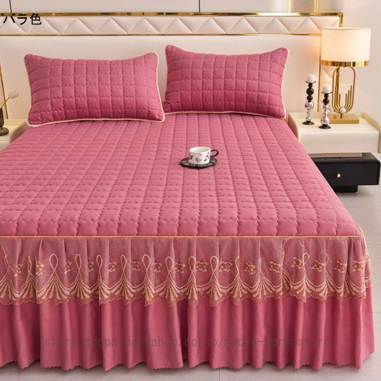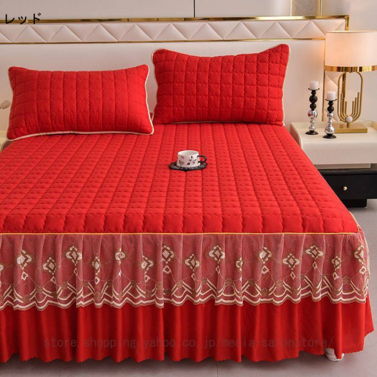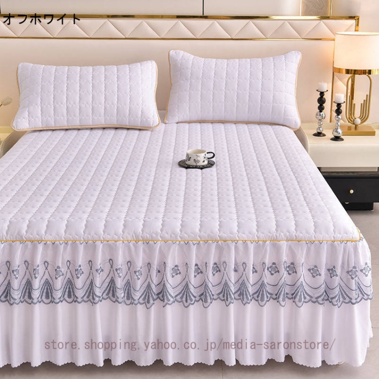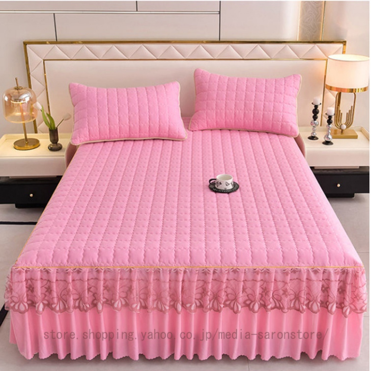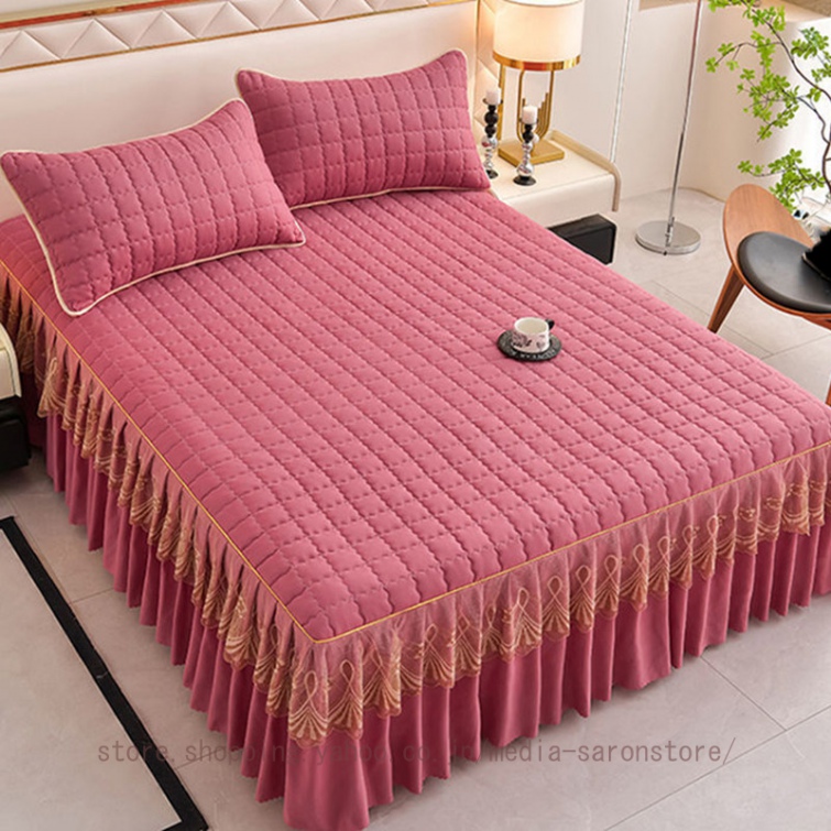 ベッドスカート 中綿ベッドスカート キルティング コットン 綿 丸洗いok 柔らかい シングル セミダブル ダブル きれいめ エレガント 上品 フリル ベッドカバー