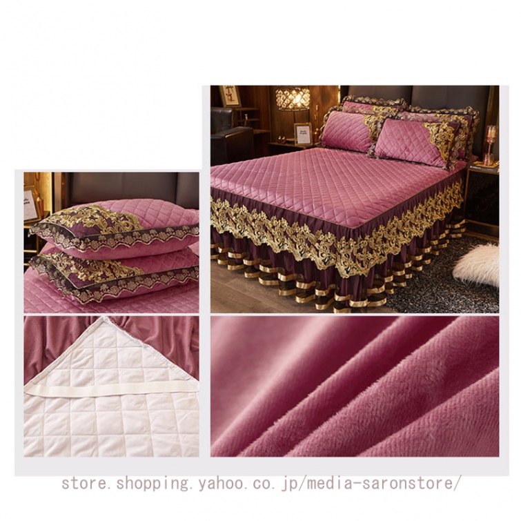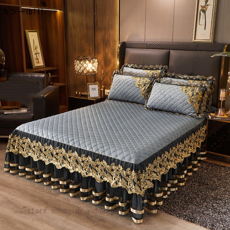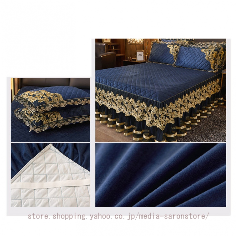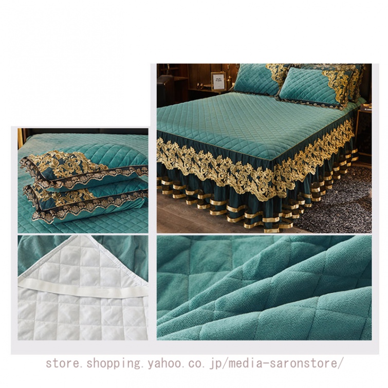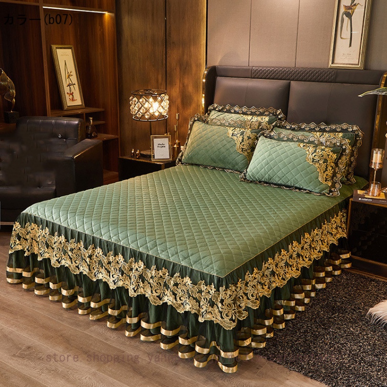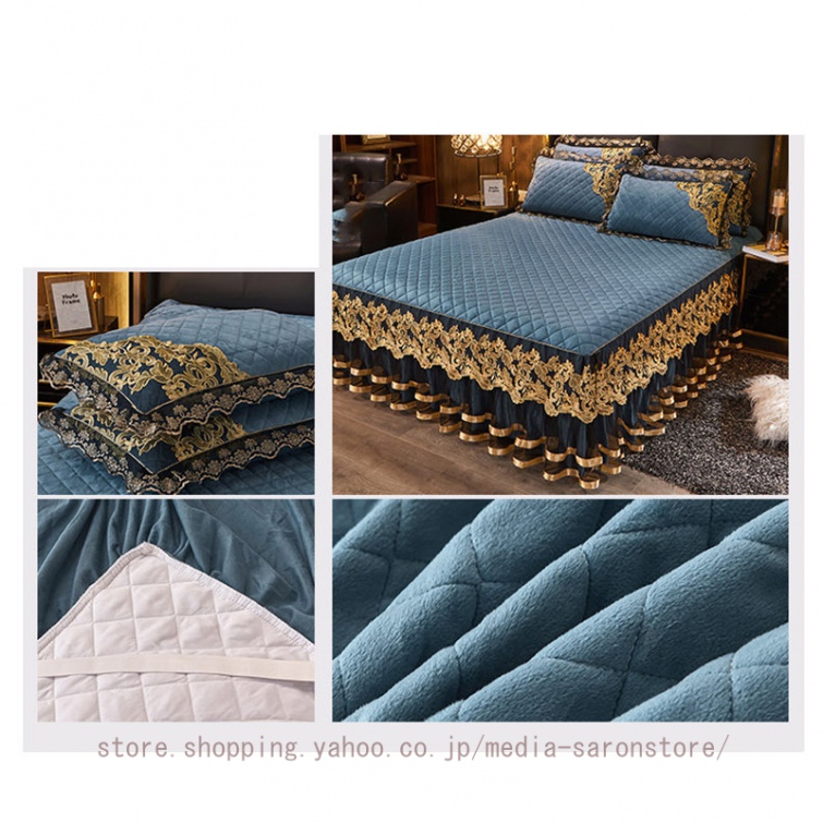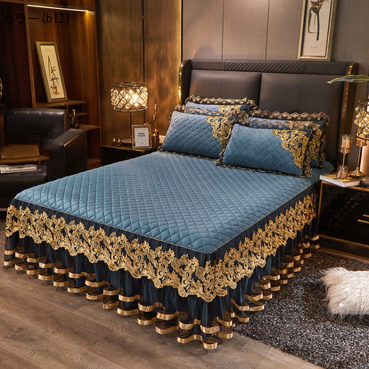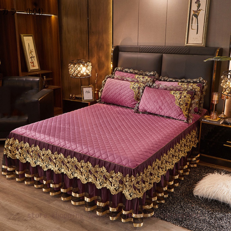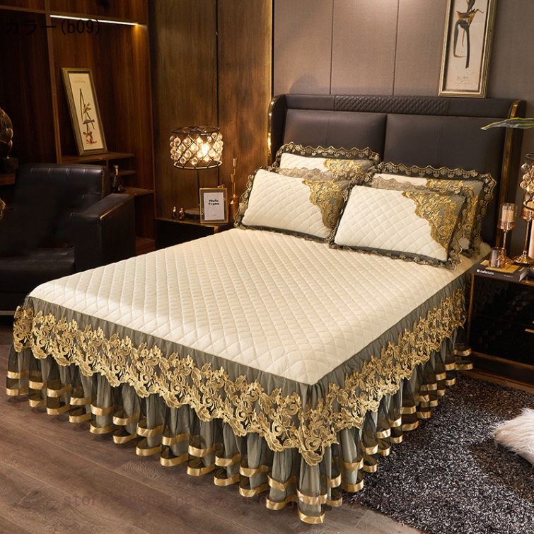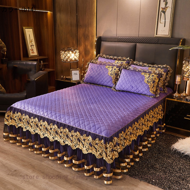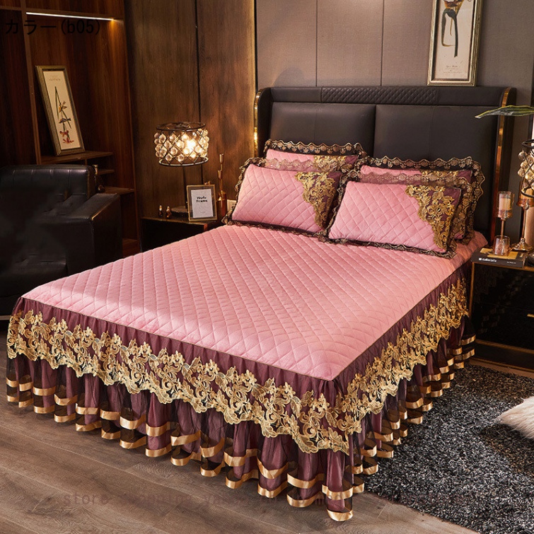 ベッドスカート 刺繍 レース タイプ キルティング 中綿 上品 厚手 姫系 フリル ベッドカバー 秋冬 柔らか ダブル キング ベッドスプレッド マットレスカバー