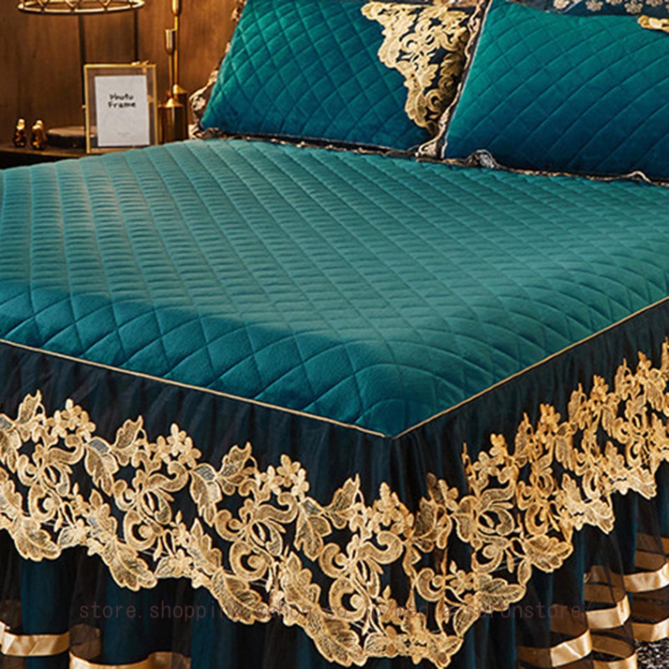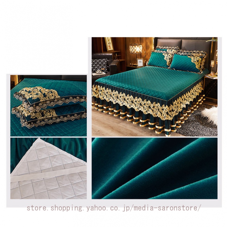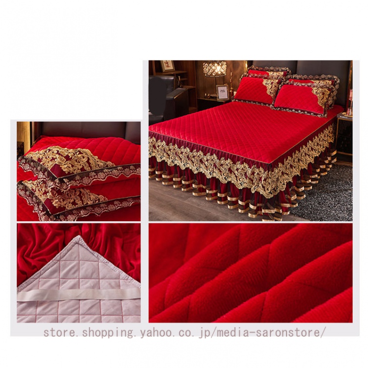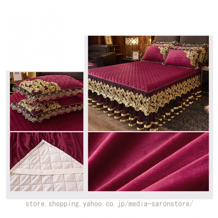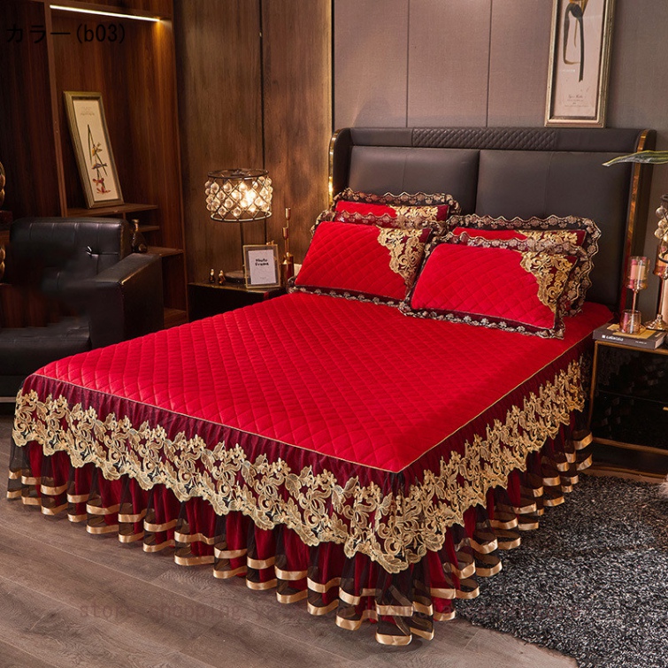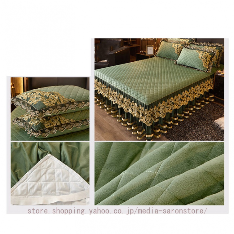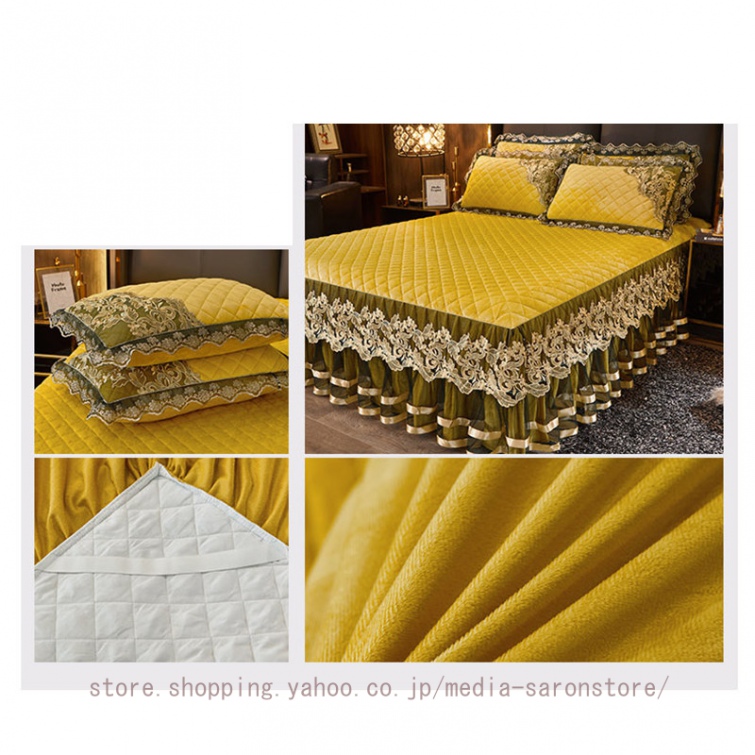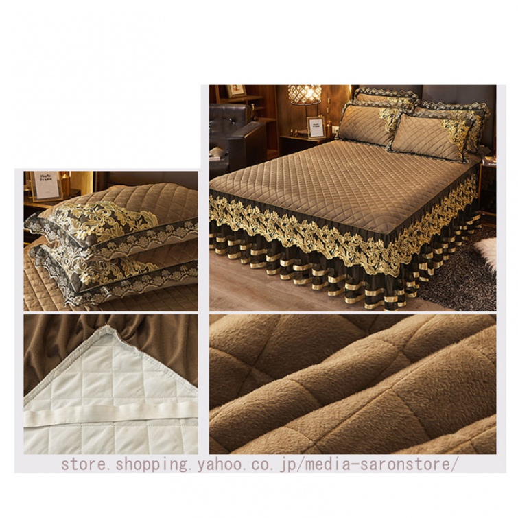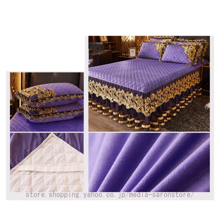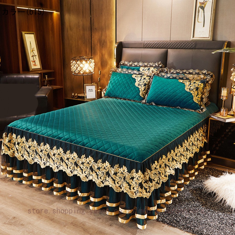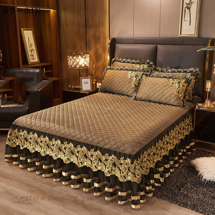 ベッドスカート 刺繍 レース タイプ キルティング 中綿 上品 厚手 姫系 フリル ベッドカバー 秋冬 柔らか ダブル キング ベッドスプレッド マットレスカバー