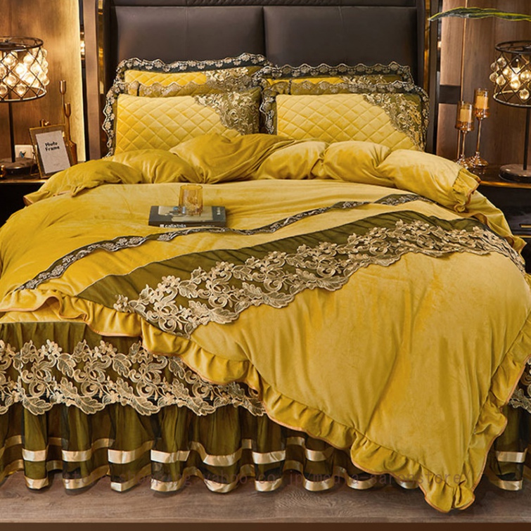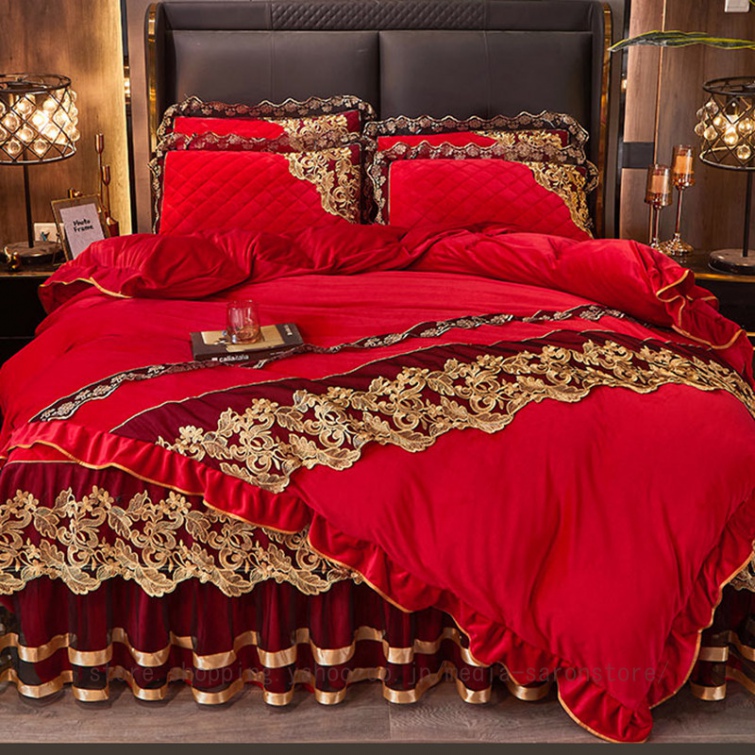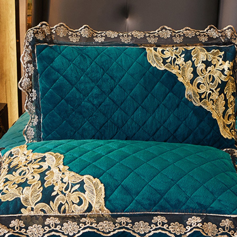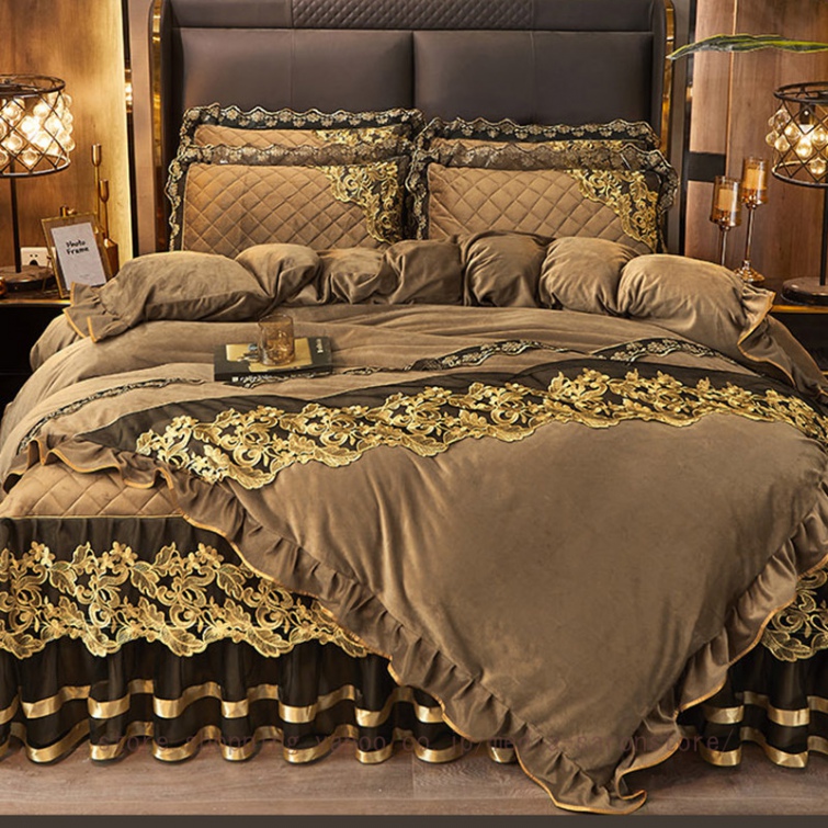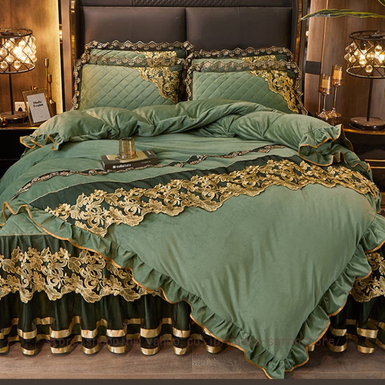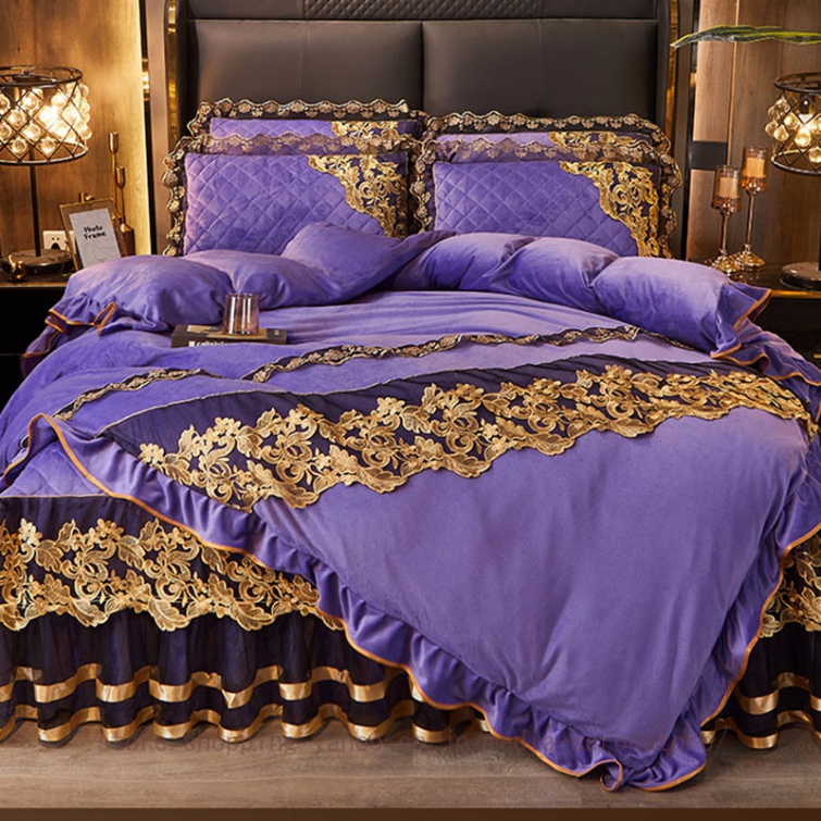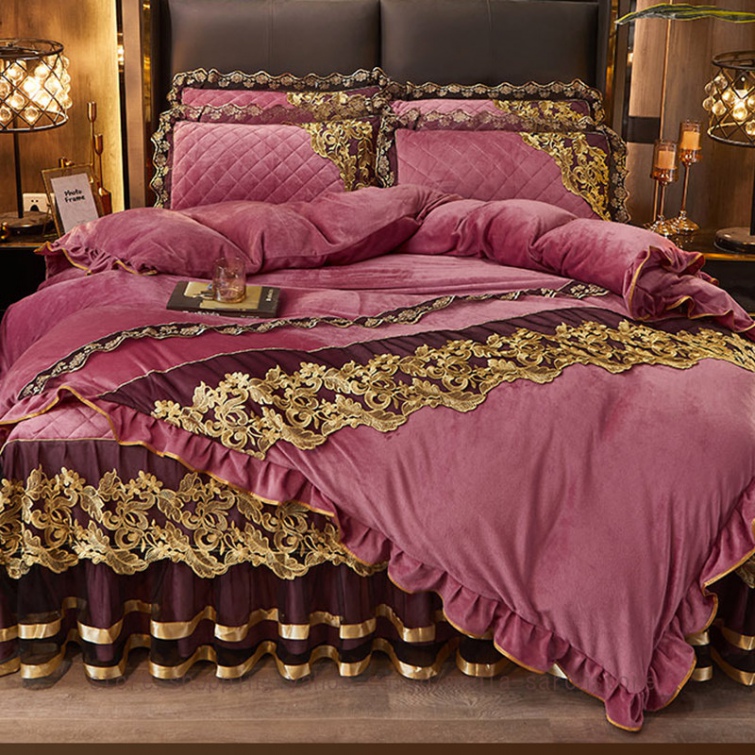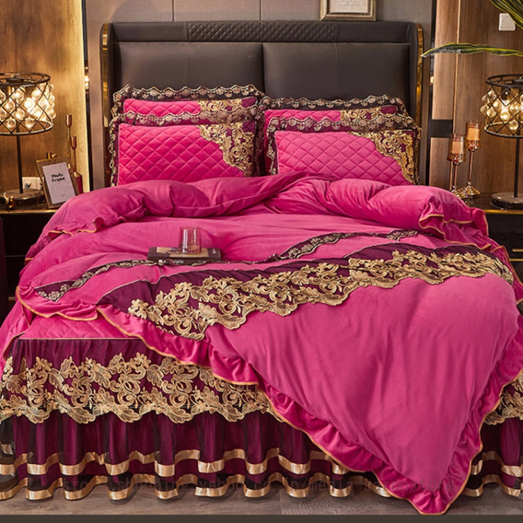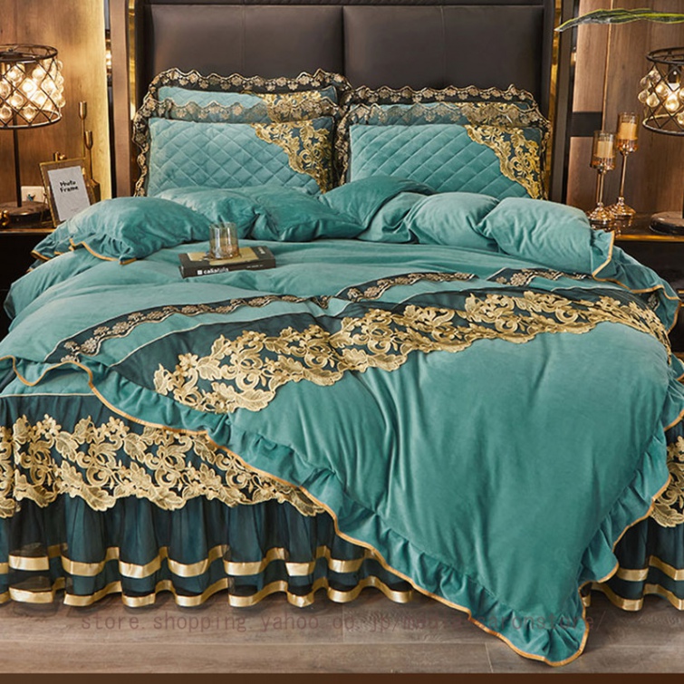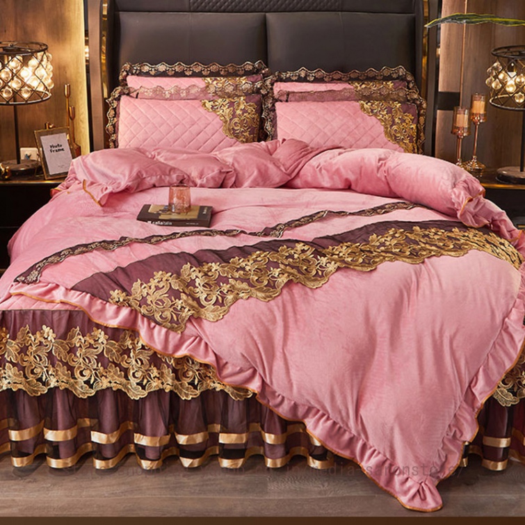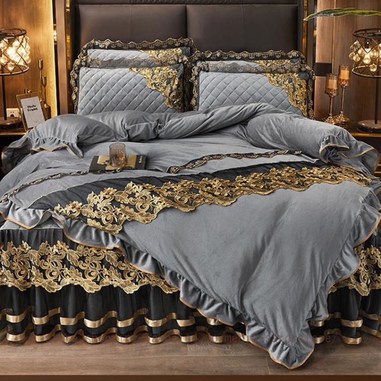 ベッドスカート 刺繍 レース タイプ キルティング 中綿 上品 厚手 姫系 フリル ベッドカバー 秋冬 柔らか ダブル キング ベッドスプレッド マットレスカバー