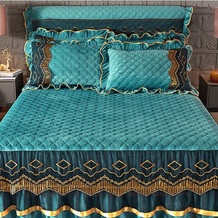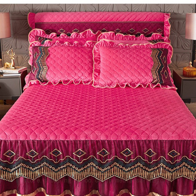 姫系 刺繍 ベッドスカート フランネル あったか マットレスカバー ダブル シングル 寝具カバー ベッドシーツ セミダブル 発熱 寒さ対策 フリル 可愛い