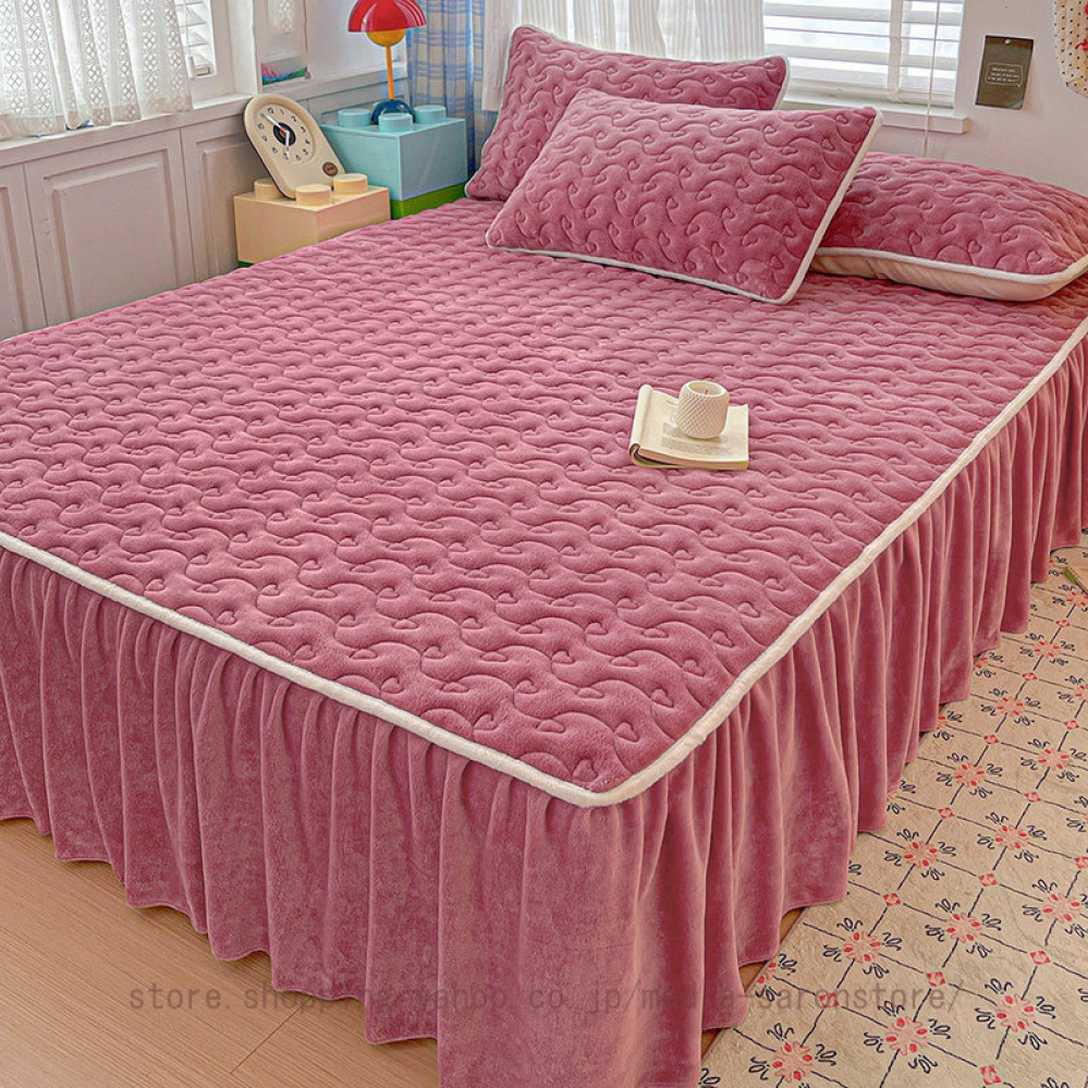 ベッドスカート ベットカバー ベッドシーツ フランネル 布団カバー セミダブル シングル シングルベッド ダブルベッド 寝具 無地 中綿 洗える シーツカバー