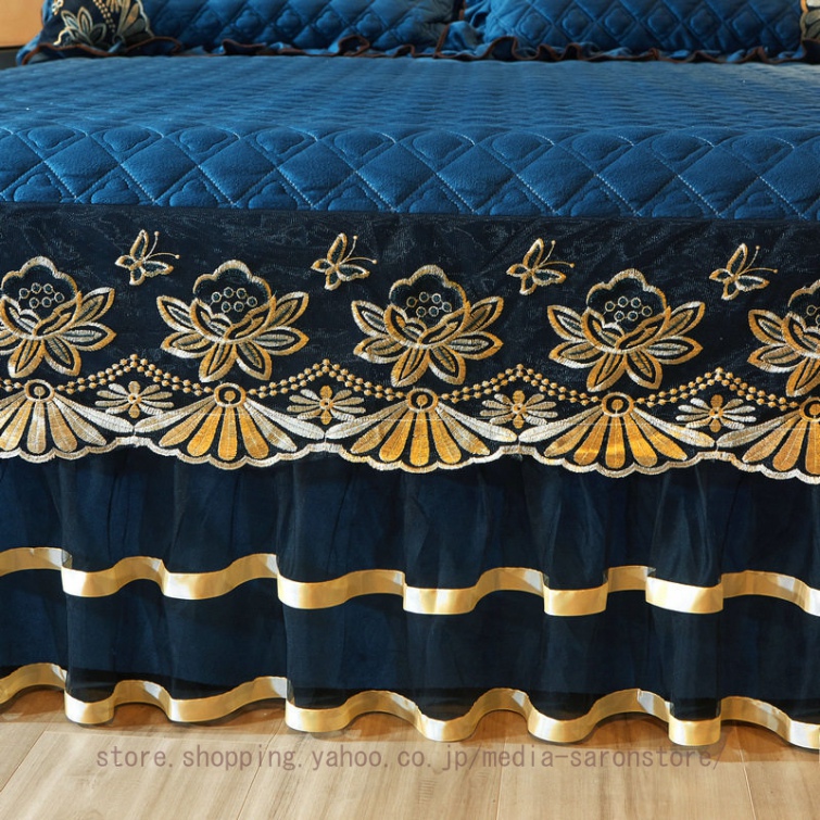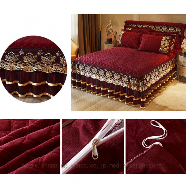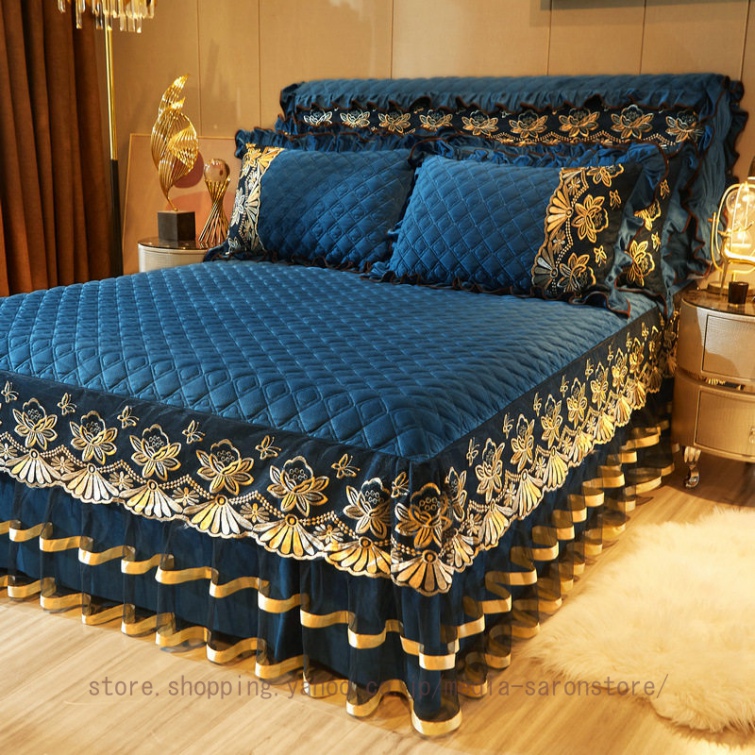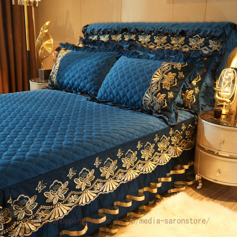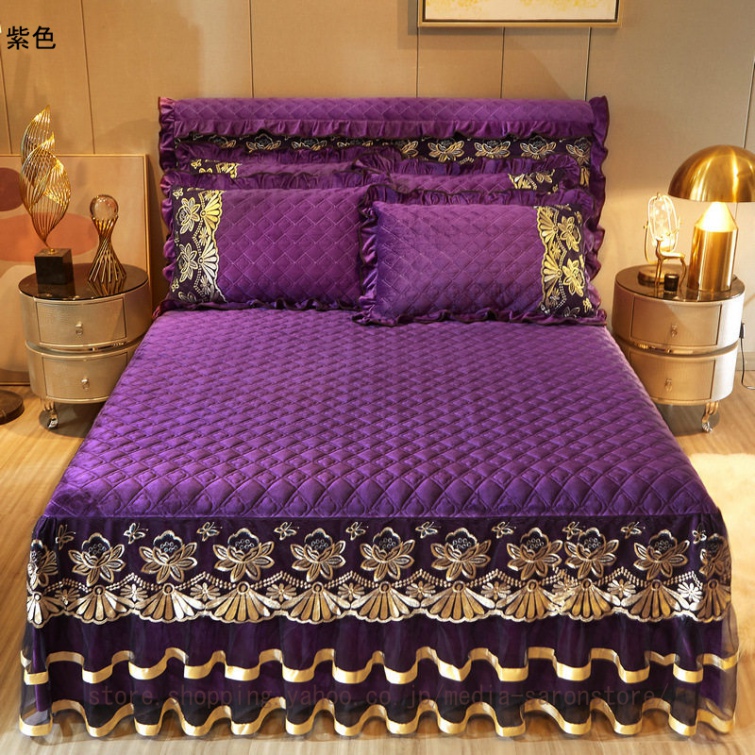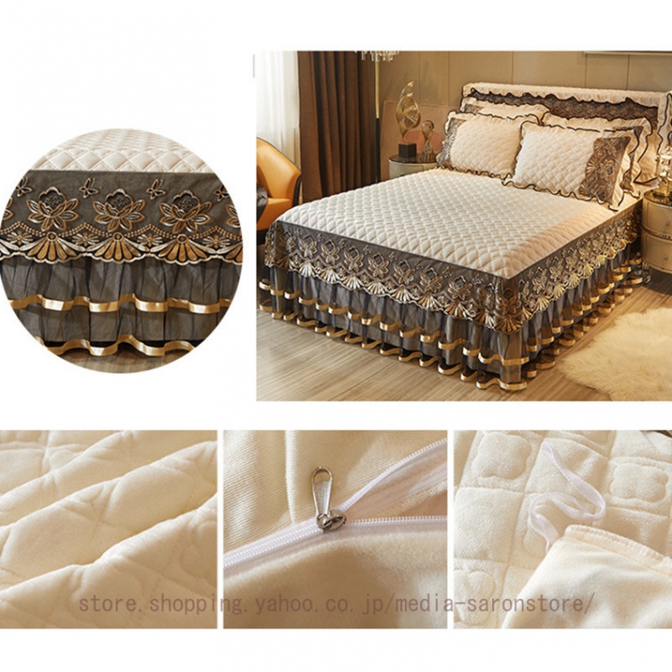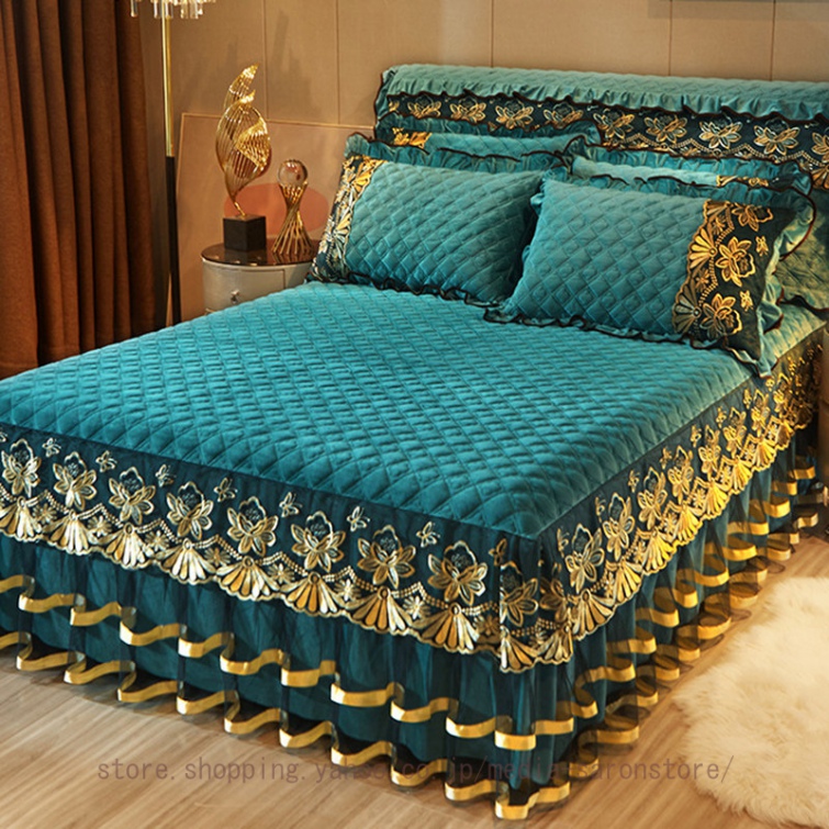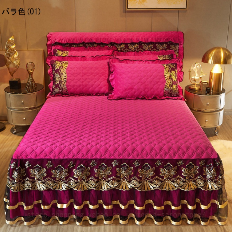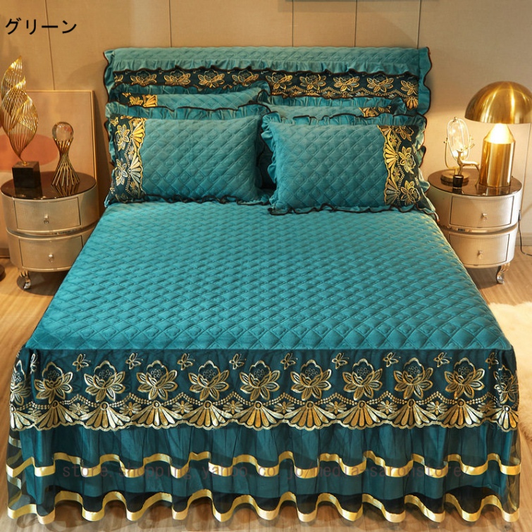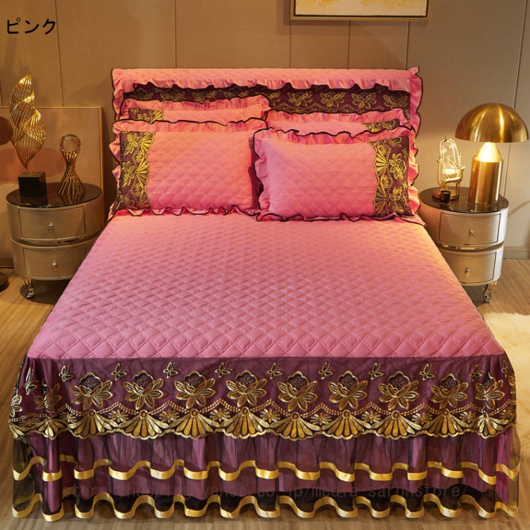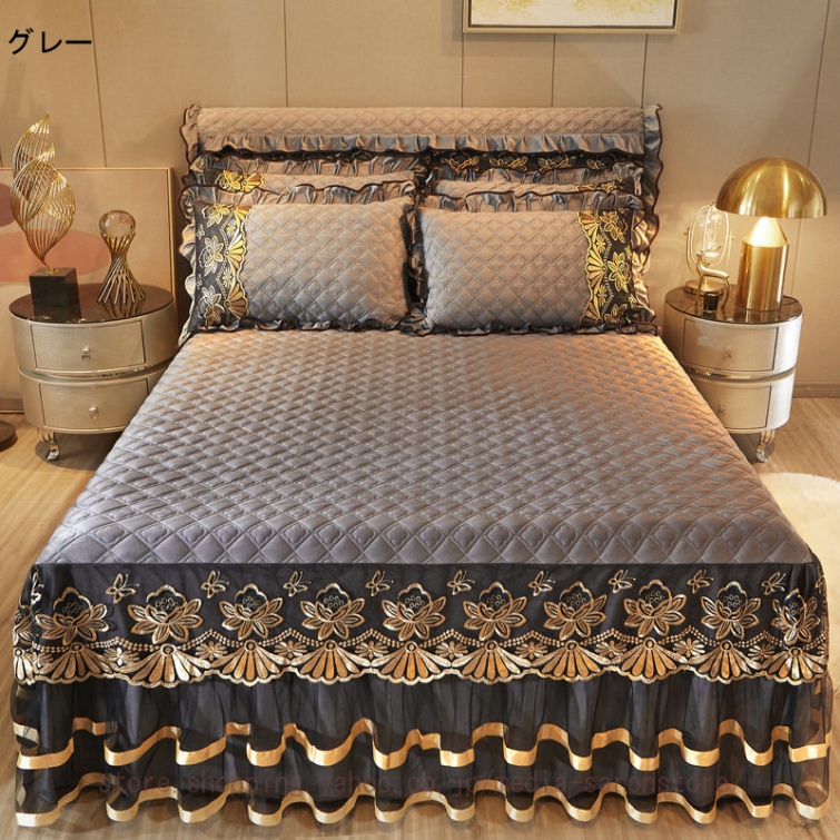ベッドスカート 枕カバー 寝具カバーセット 3点セット インテリア 上品 フリル レース姫系 ベッドカバー セミダブル シングル ダブル キング ベッドスプレッド