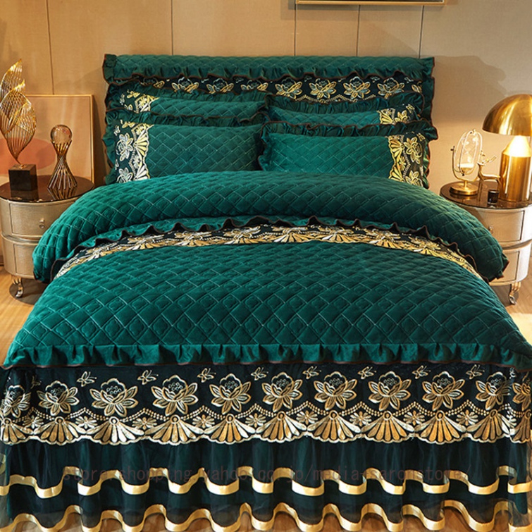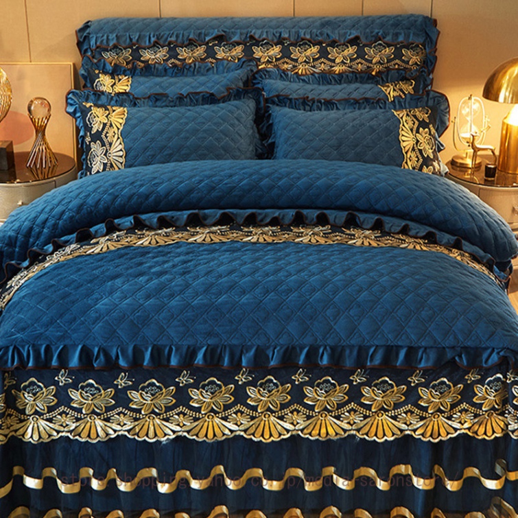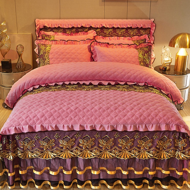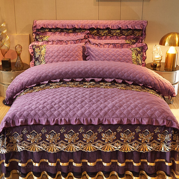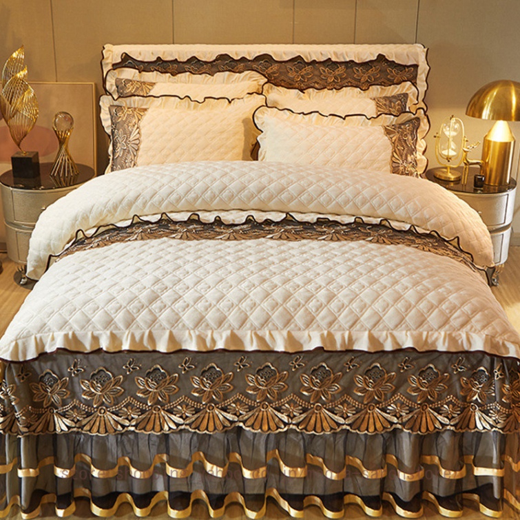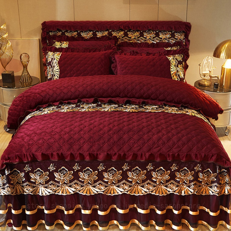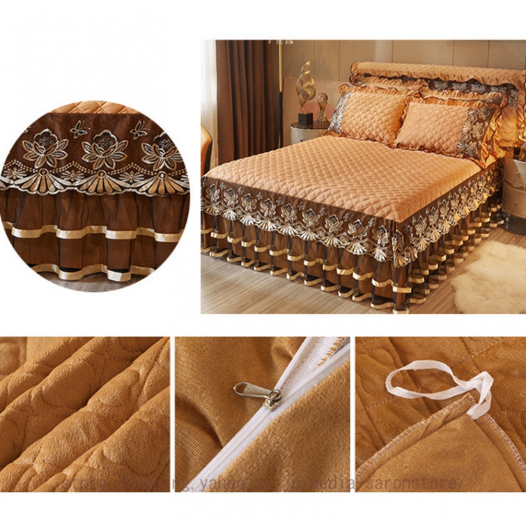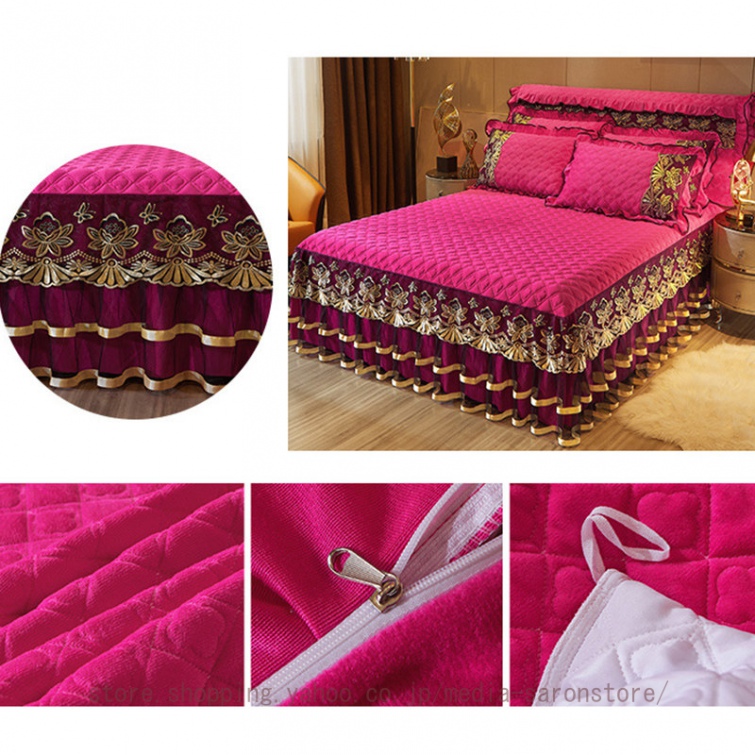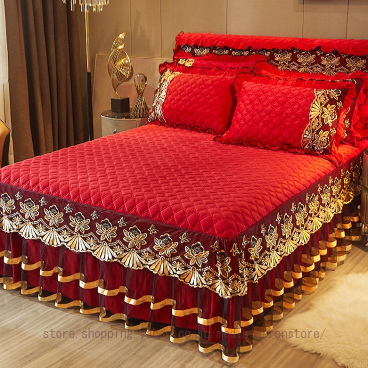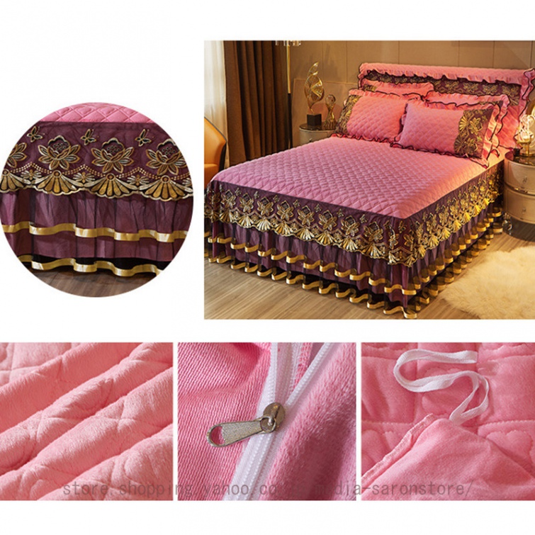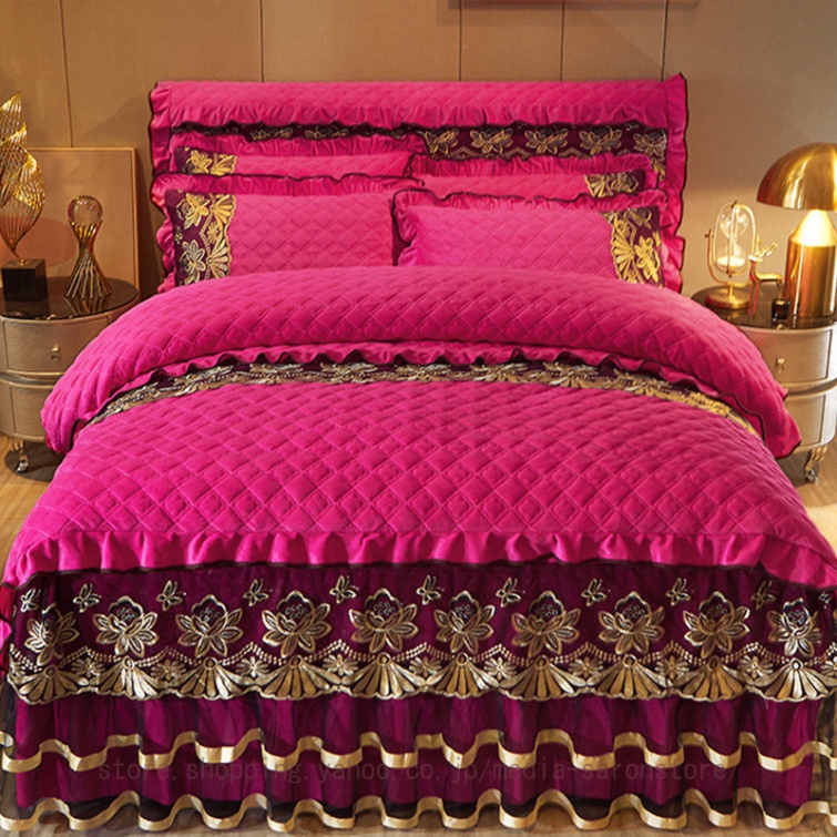 ベッドスカート 枕カバー 寝具カバーセット 3点セット インテリア 上品 フリル レース姫系 ベッドカバー セミダブル シングル ダブル キング ベッドスプレッド