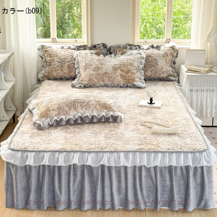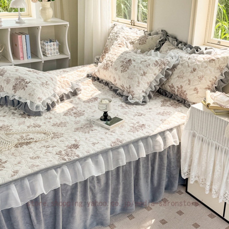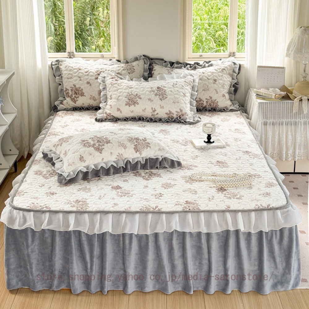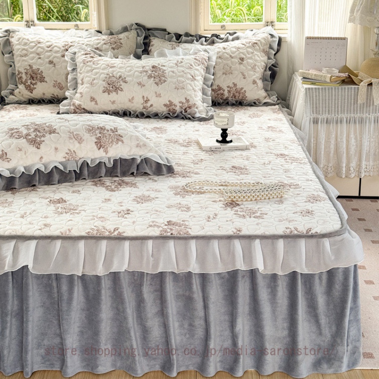 ベッドスカート フリルデザイン 無地 北欧 贅沢 プリーツ かわいい おしゃれ 取り付け簡単 エレガント ベッド装飾 ベッドカバー マットカバー フリル 姫系