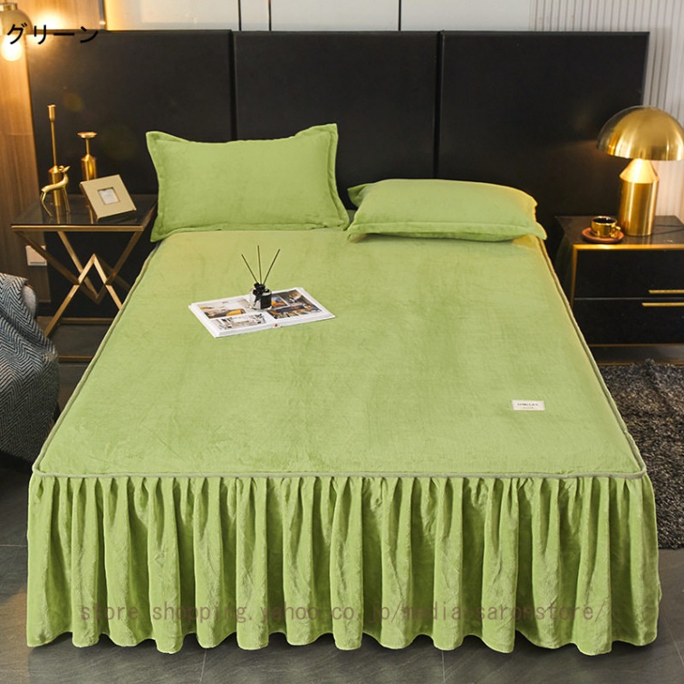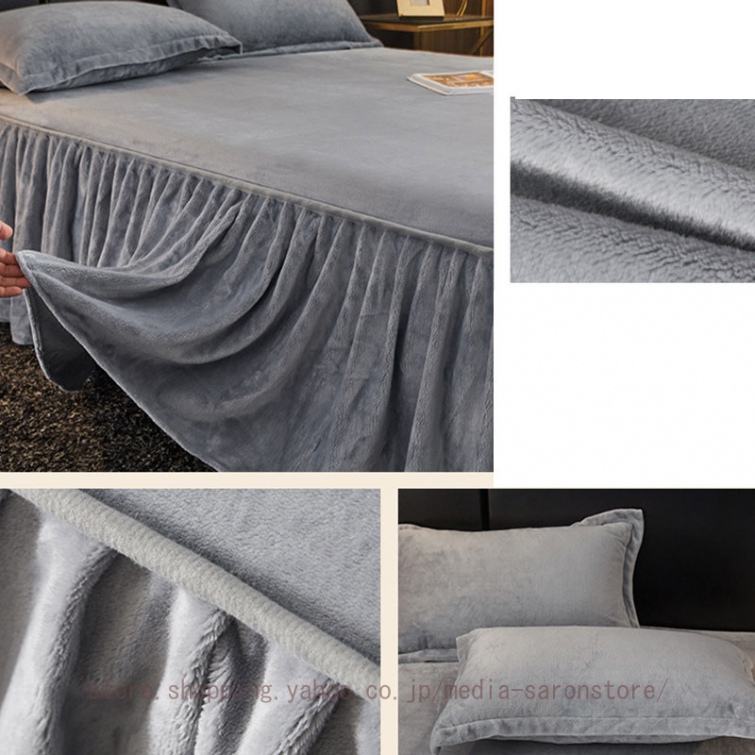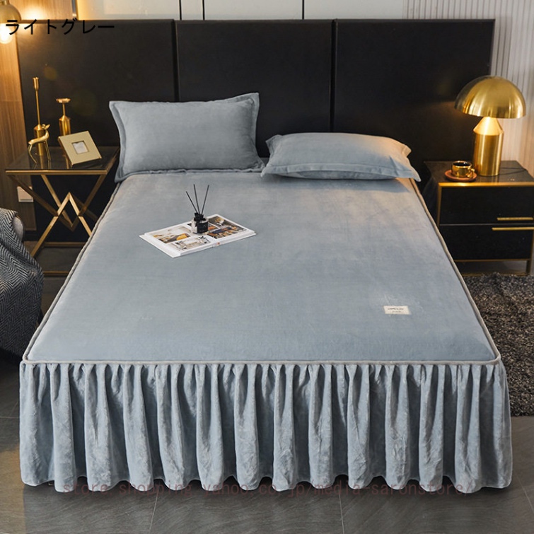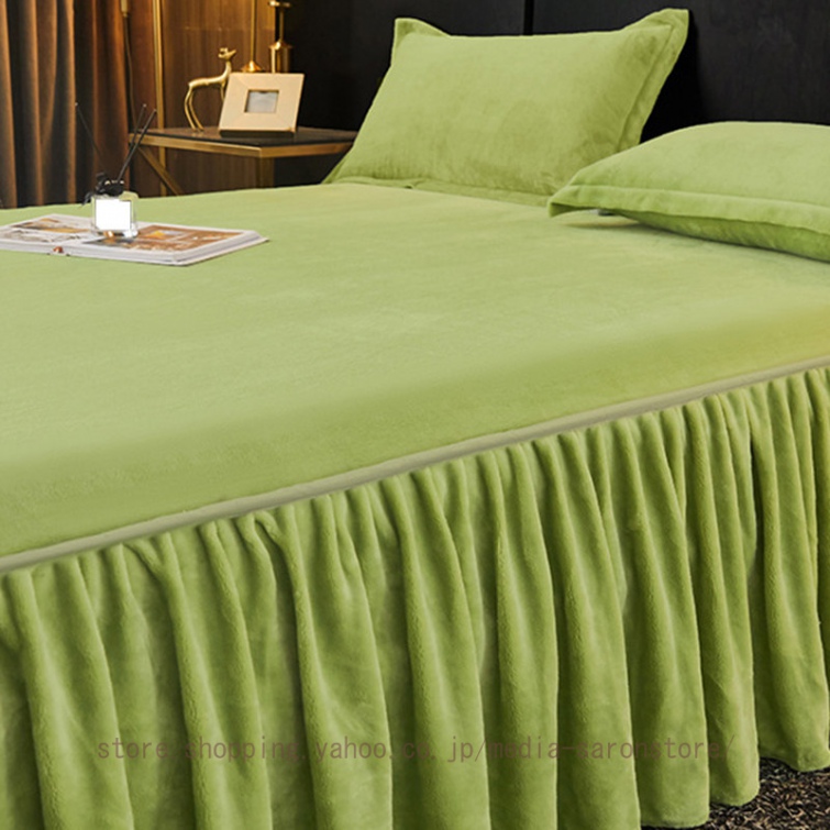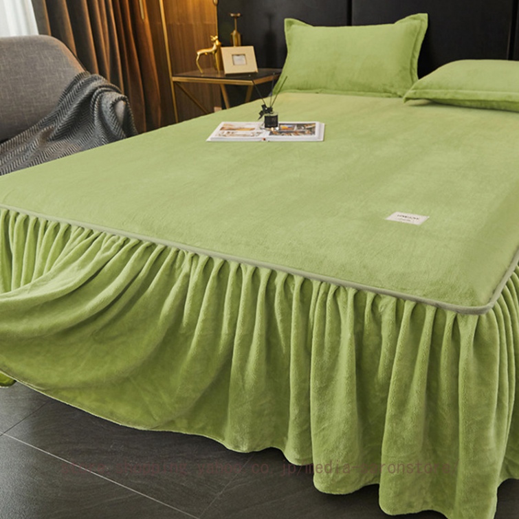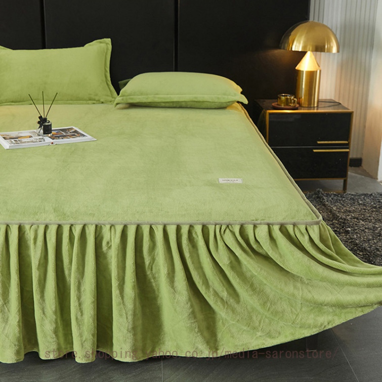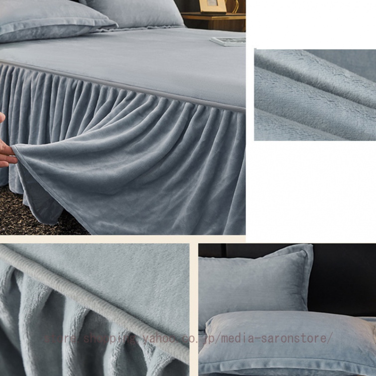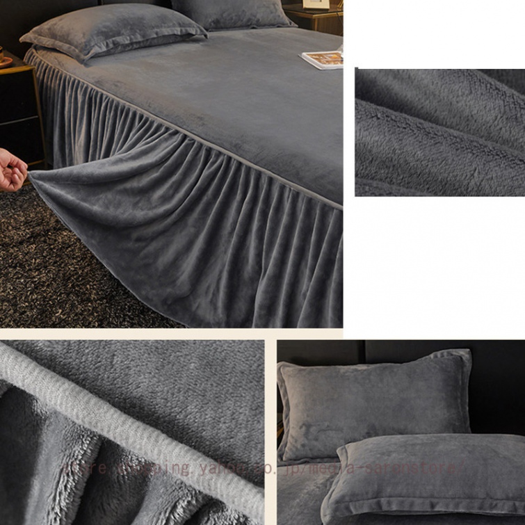 ベッドスカート フランネル キルティング 上品 厚手 姫系 レース ベッドカバー 秋冬 暖かい レース フリル 柔らか ダブル キング ベッドスプレッド タイプ