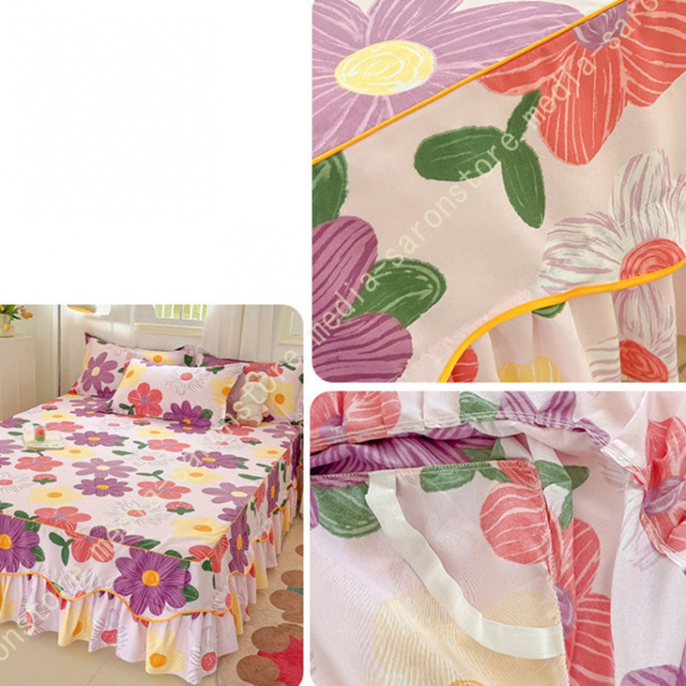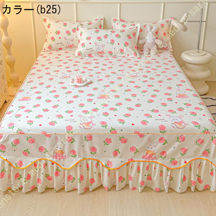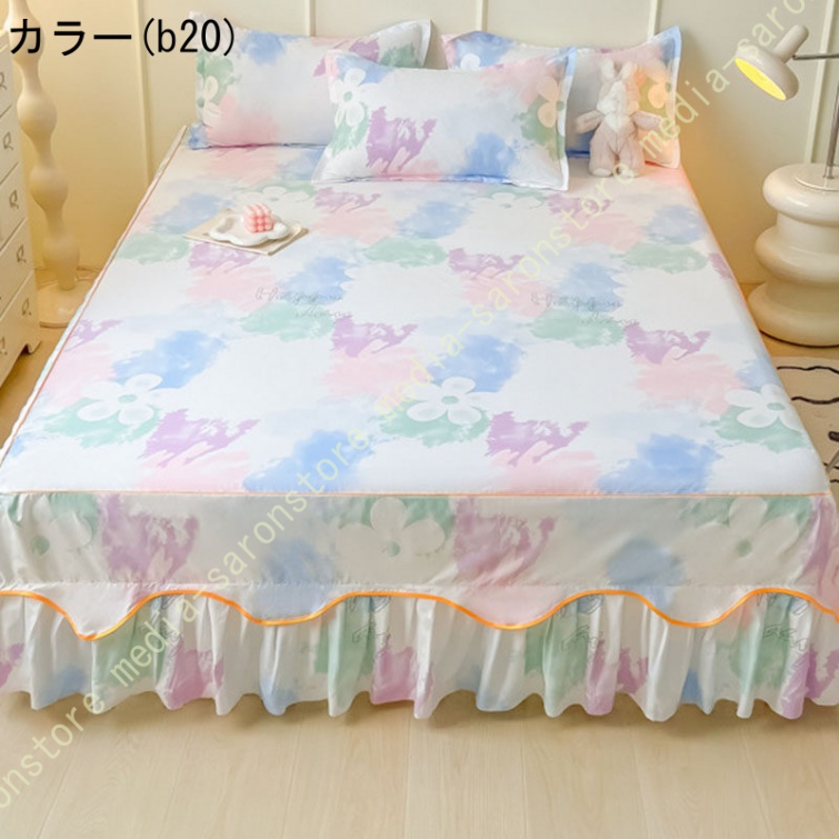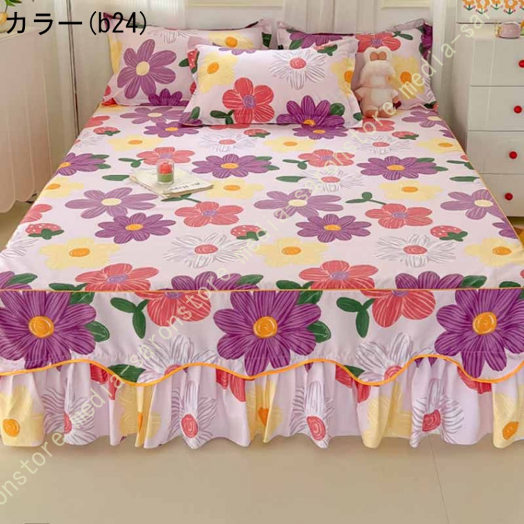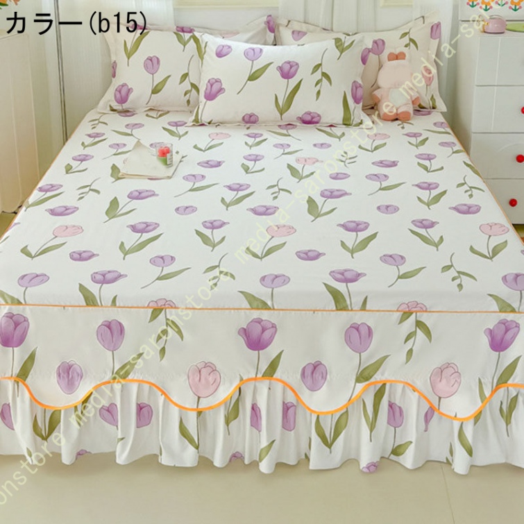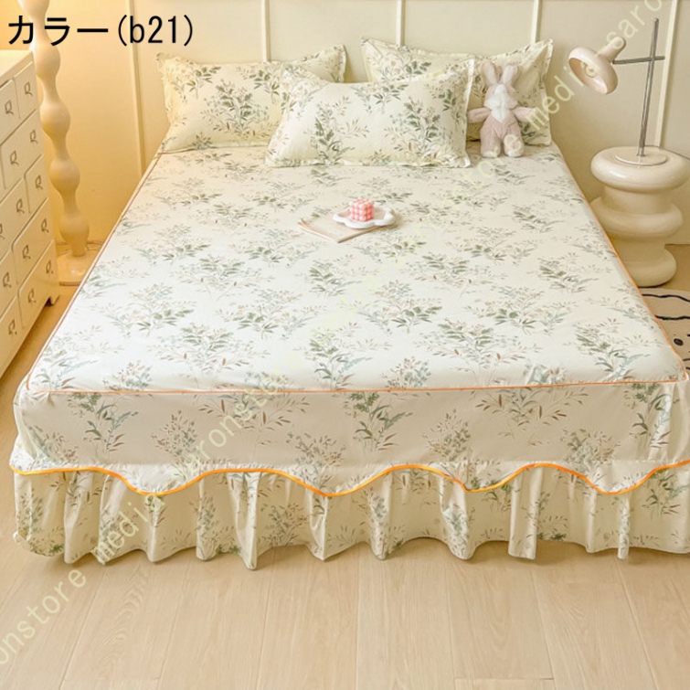 花柄 ベッドスカート ベッドシーツ マットレス敷きカバー 肌に優しい ベッドスプレッド フリル 寝具カバー 敷きシーツ ベッドシート コットン 高通気性 花柄