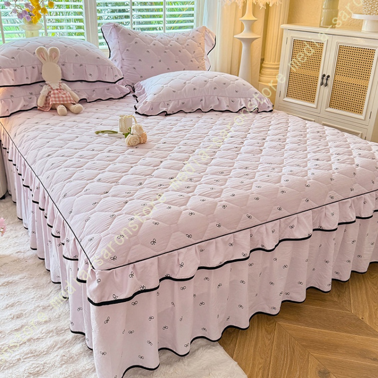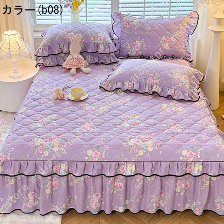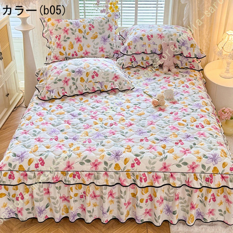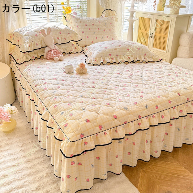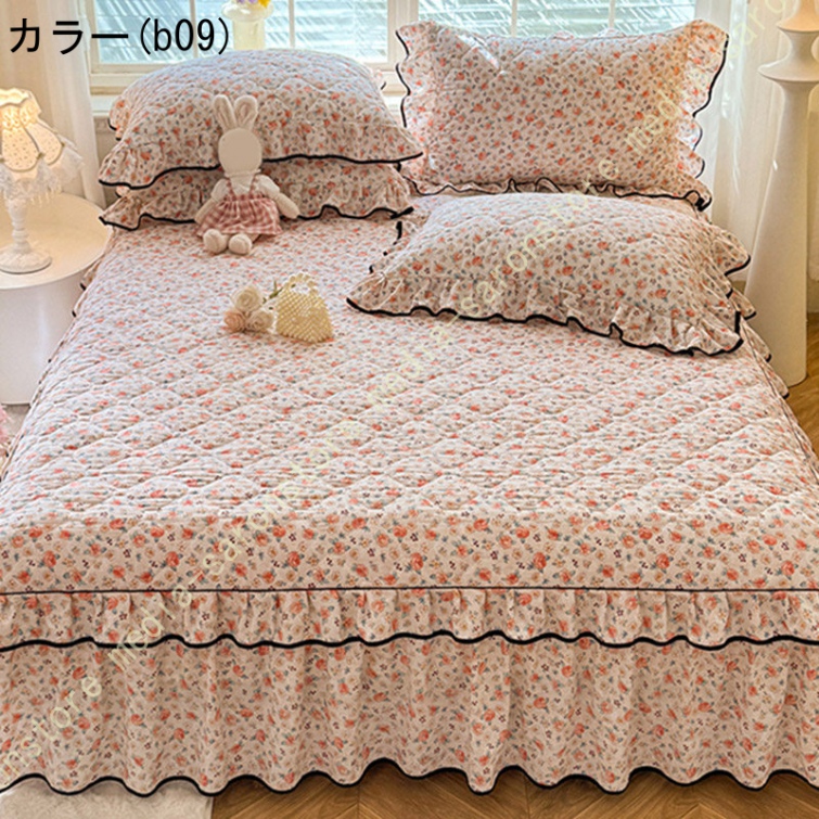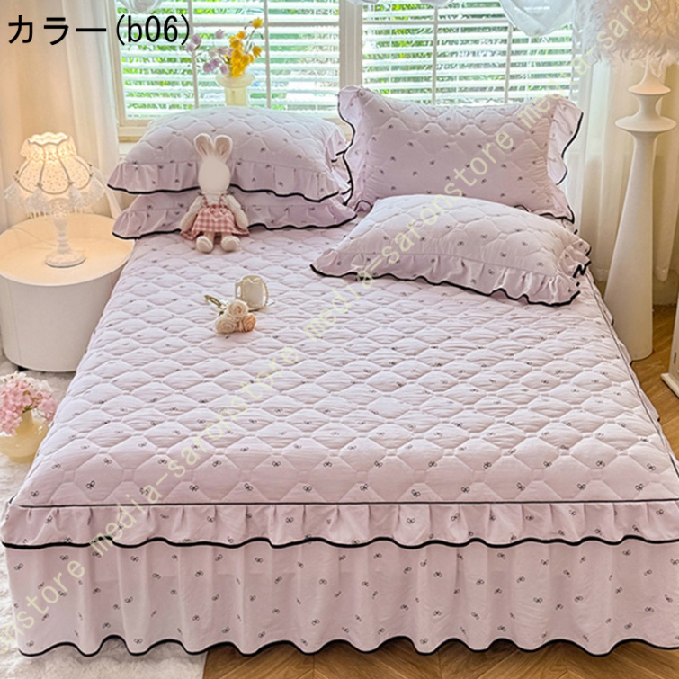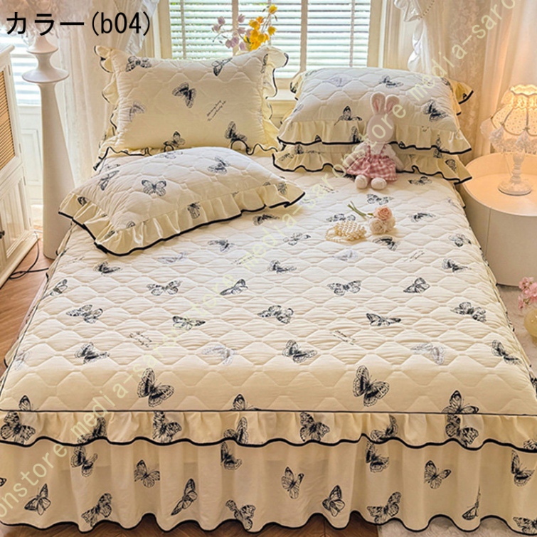 中綿 ベッドスカート 姫系 中綿 厚め 保温 キルティング 柔らか 暖かい ダブル クイーン キング ロング 秋 きれいめ ベッドカバー シーツカバー