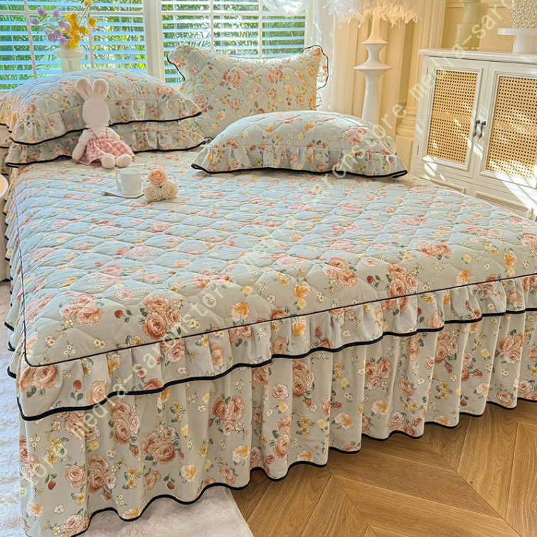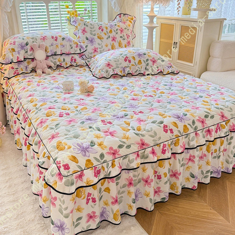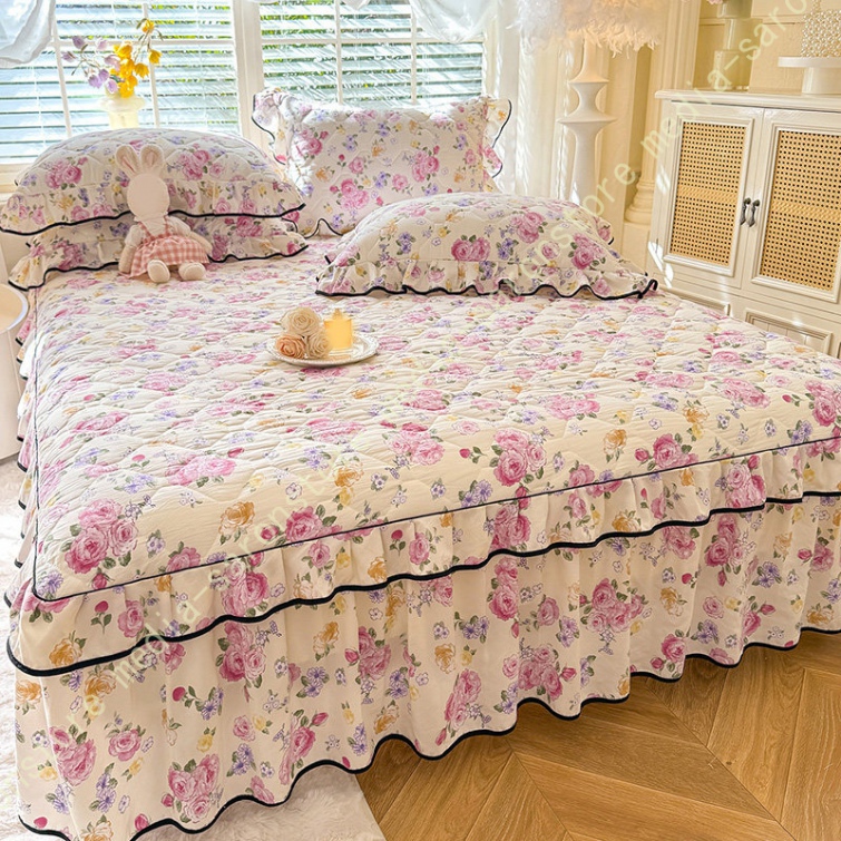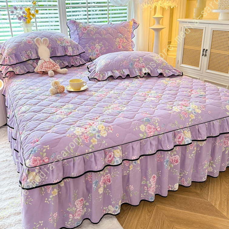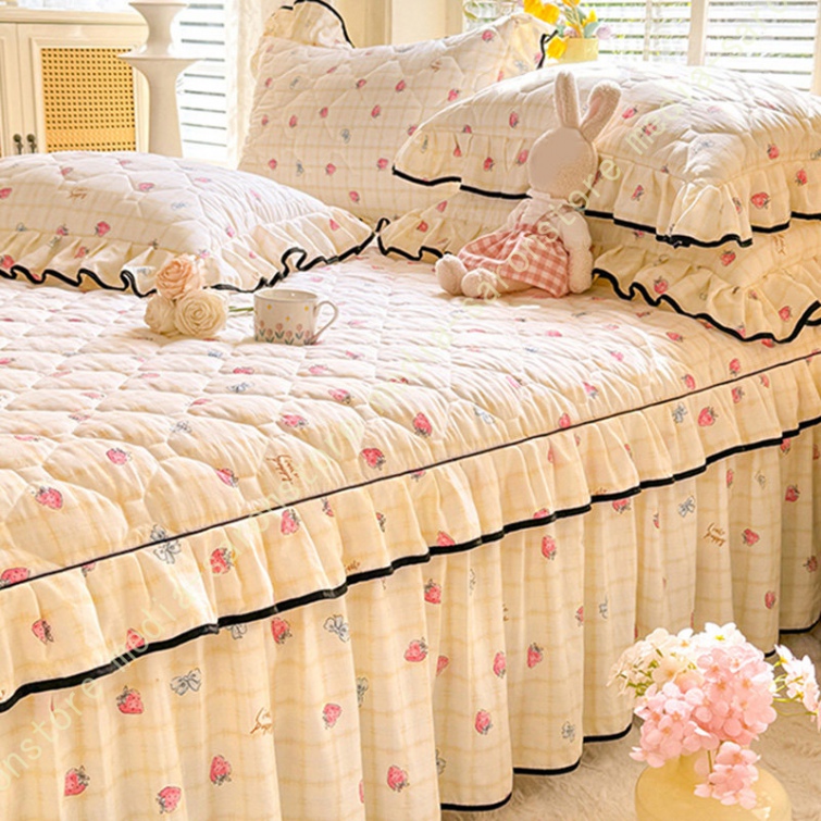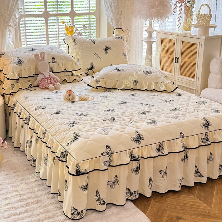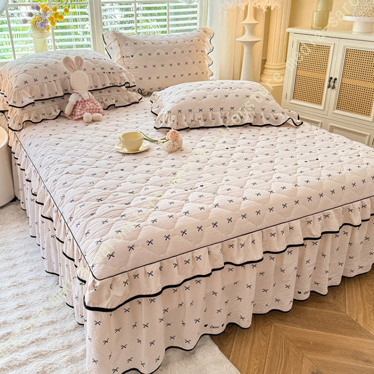 中綿 ベッドスカート 姫系 中綿 厚め 保温 キルティング 柔らか 暖かい ダブル クイーン キング ロング 秋 きれいめ ベッドカバー シーツカバー