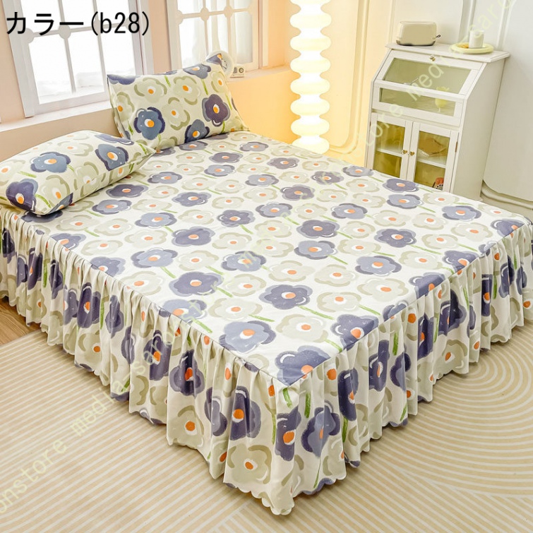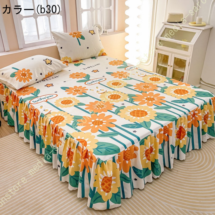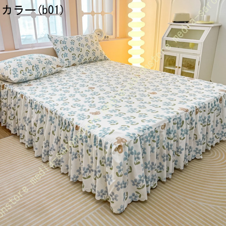 花柄 ベッドスカート ベッドシーツ マットレス敷きカバー 肌に優しい ベッドスプレッド フリル 寝具カバー 敷きシーツ ベッドシート コットン 高通気性 花柄