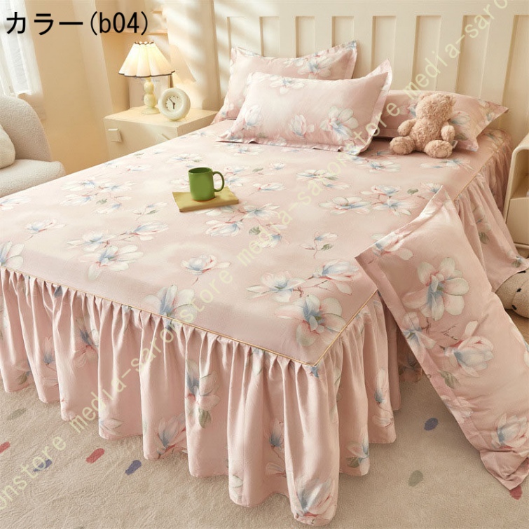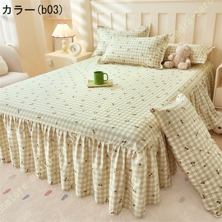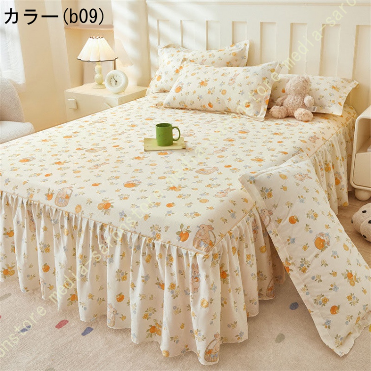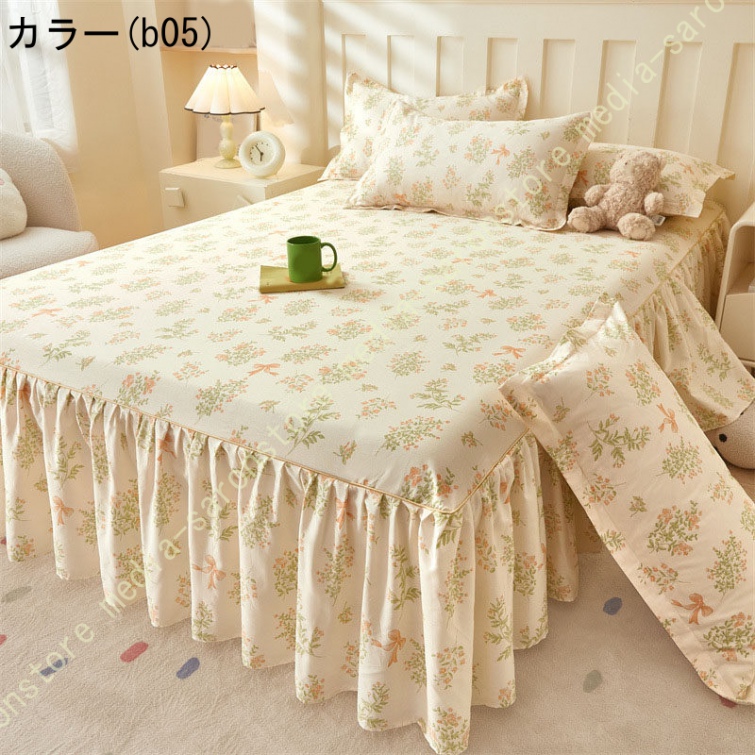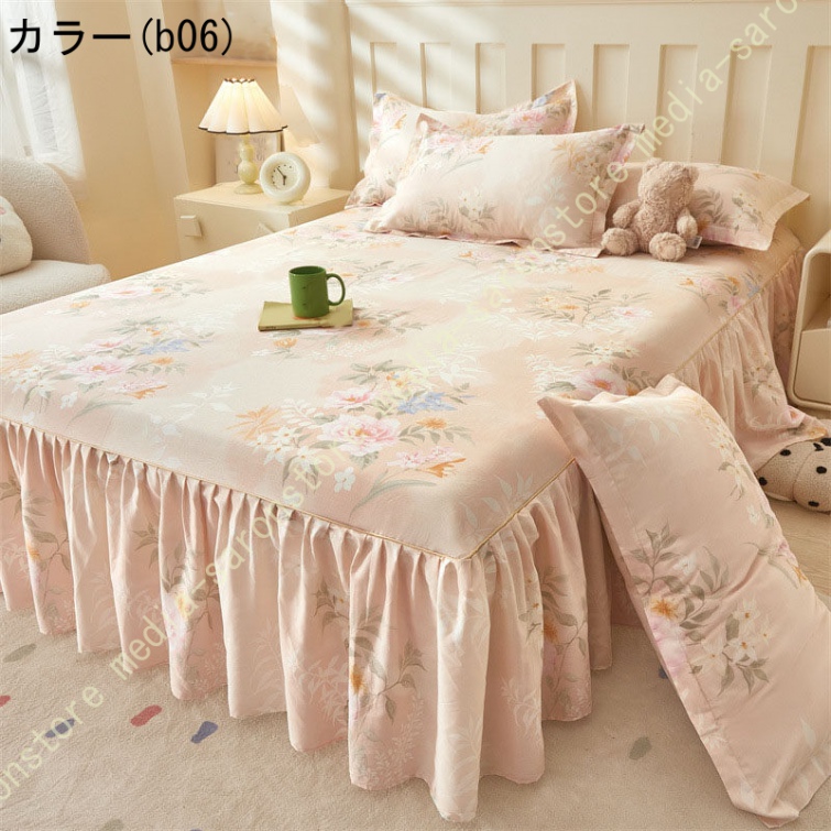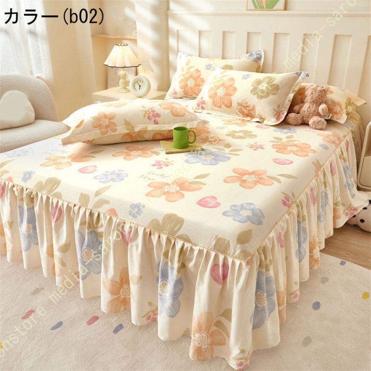 綿 ベッドカバー 寝具カバー シングル 通気性 花柄 可愛いフリル一体式ベッドシーツ マットレス敷きカバー 姫系 ベッドスカート 丸洗いOK オールシーズン 姫系