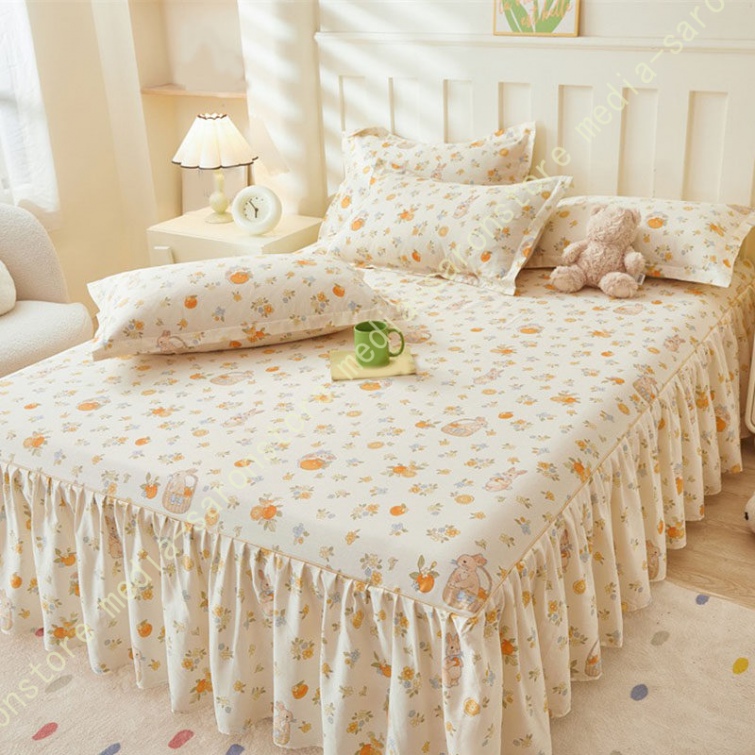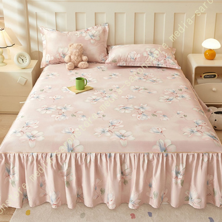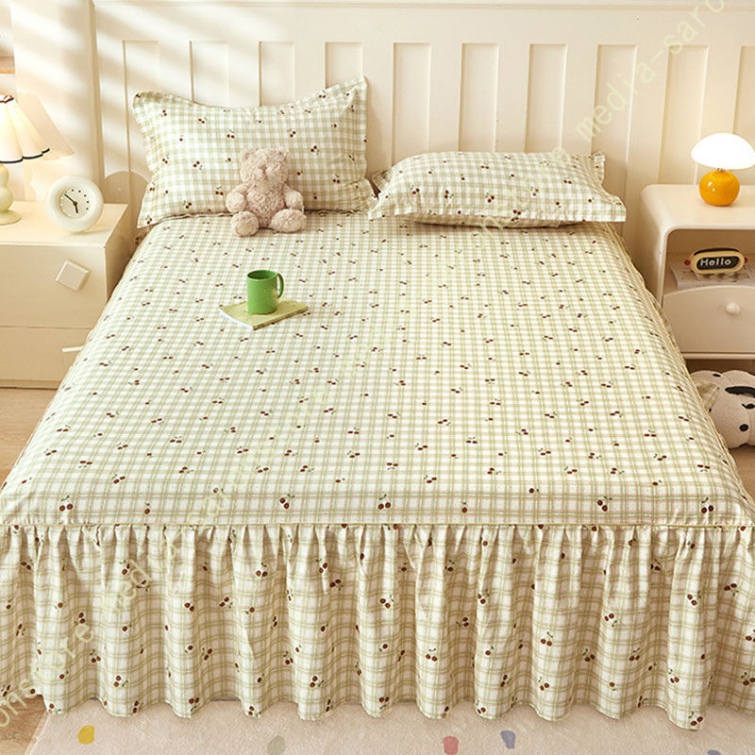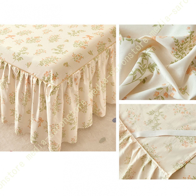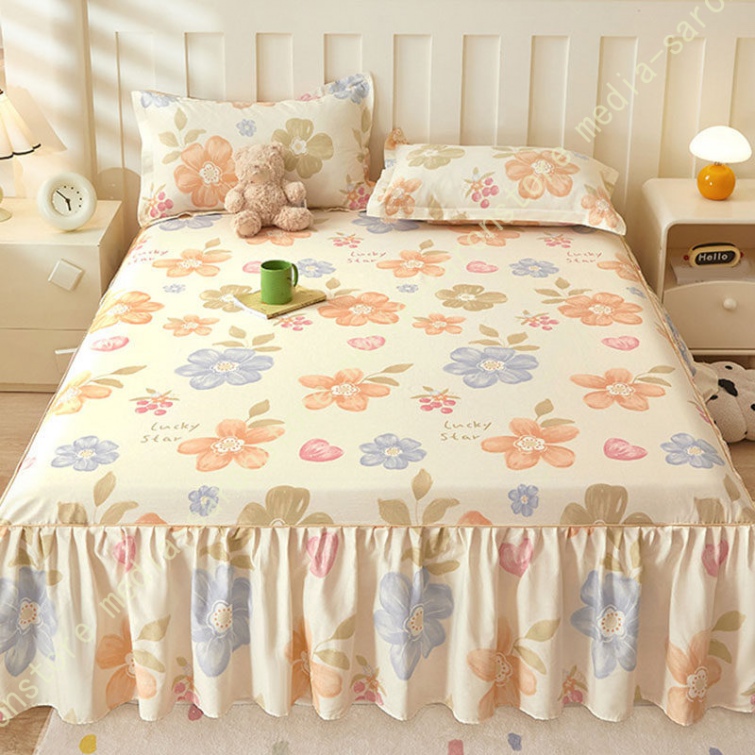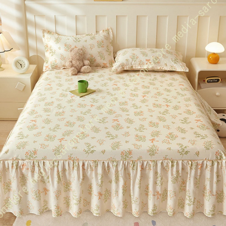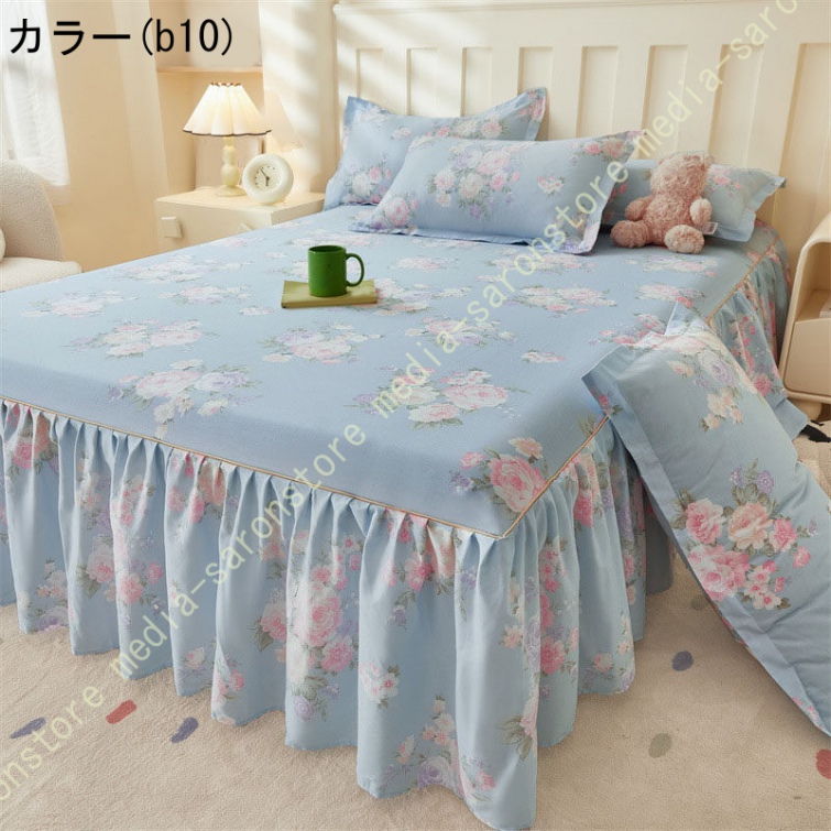 綿 ベッドカバー 寝具カバー シングル 通気性 花柄 可愛いフリル一体式ベッドシーツ マットレス敷きカバー 姫系 ベッドスカート 丸洗いOK オールシーズン 姫系