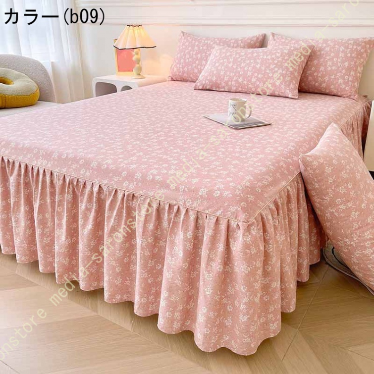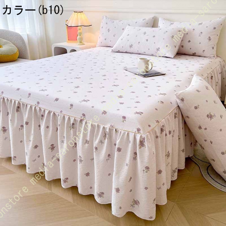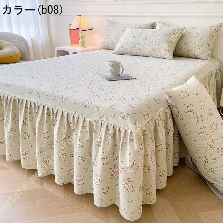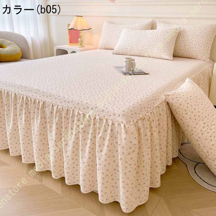ベッドスカート 花柄 ベッドスプレッド ベッドシーツ 可愛い 春・夏・秋・冬 四季用 プリンセス風 姫様風 耐久性 フリル 通年寝具 花柄 肌に優しい