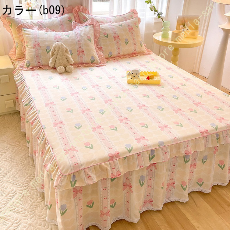 ベッドスカート 可愛い 姫系 フリル 枕カバー マットレスカバー 枕カバー 寝具カバー ベッドカバー シングル セミダブル ベッドシーツ ベッドスプレッド