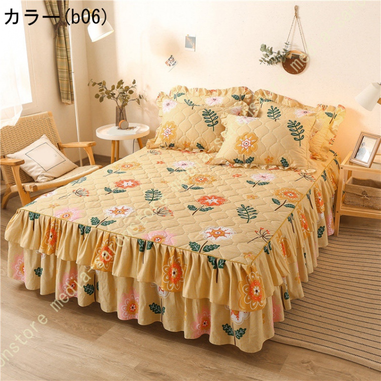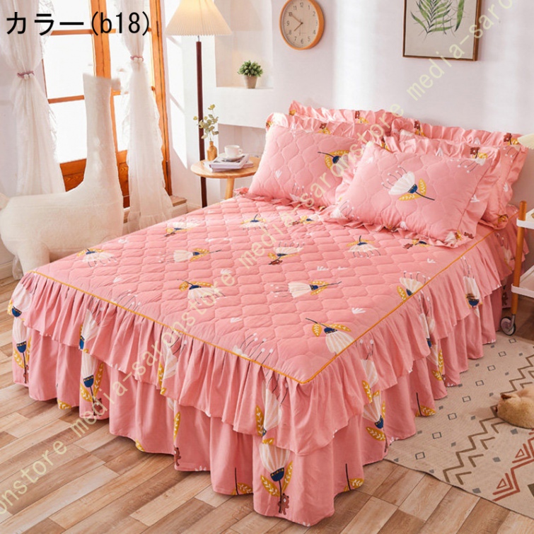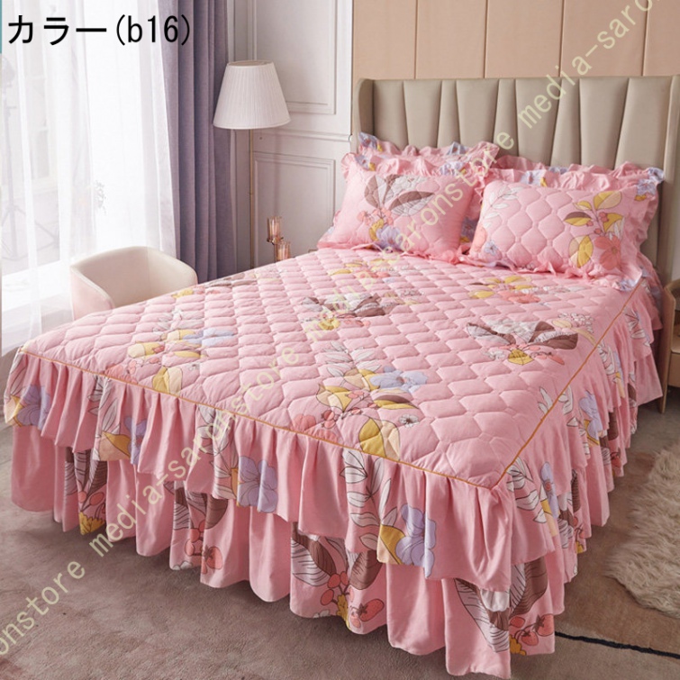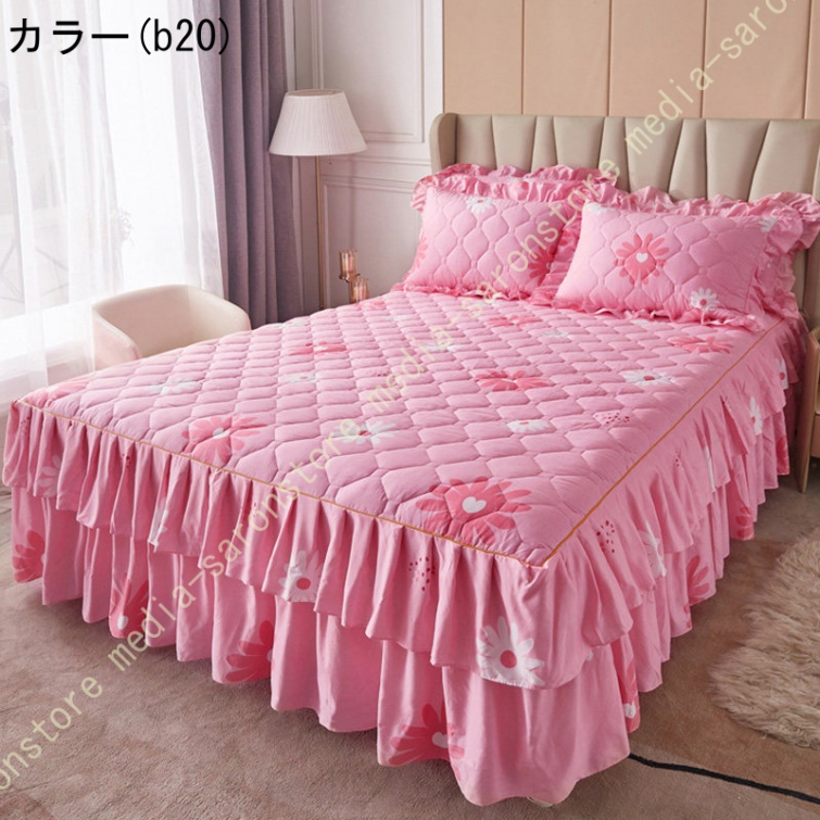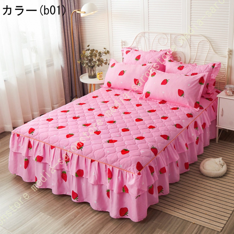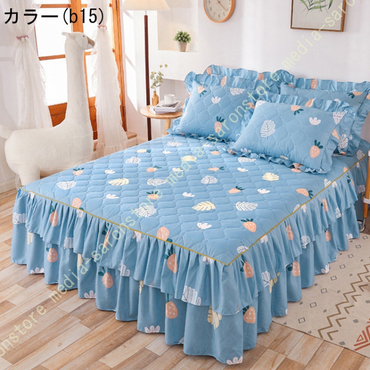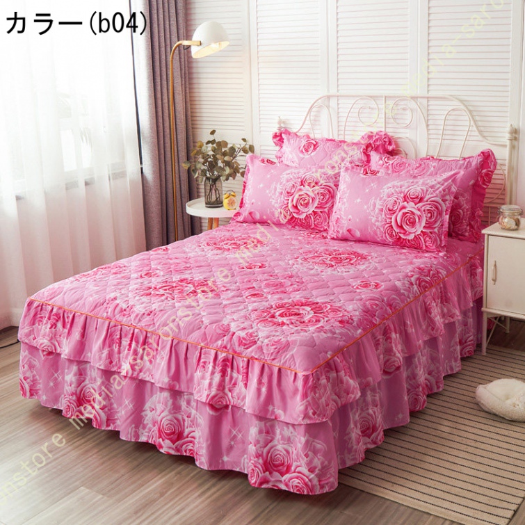 ベッドスカート 綿 マットレスカバー フリル付き 敷パッド一体型 キルティング フリル付き 中綿 ベッドカバー マットレスカバー ベッドシーツ 柔らかい
