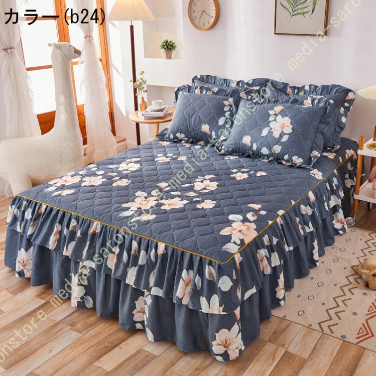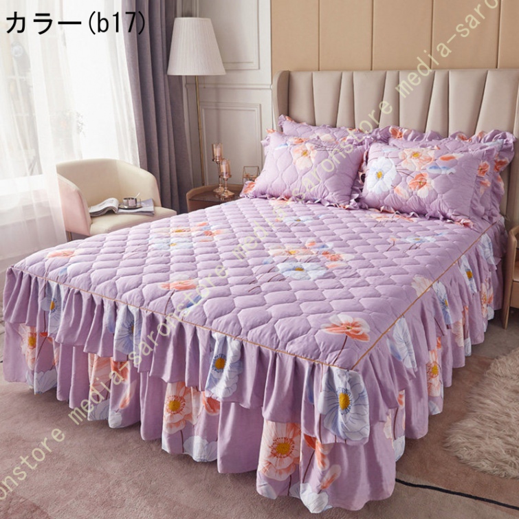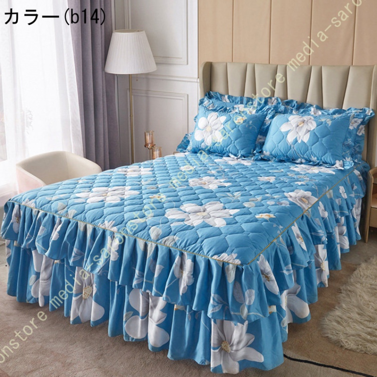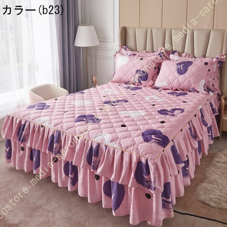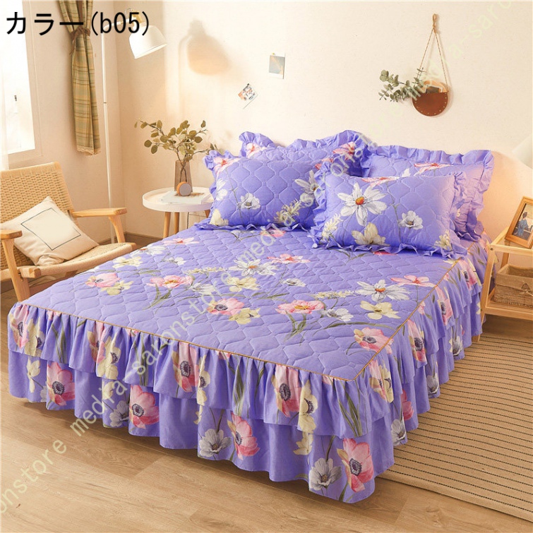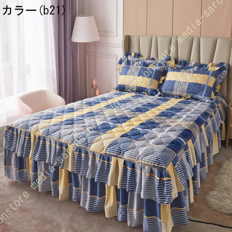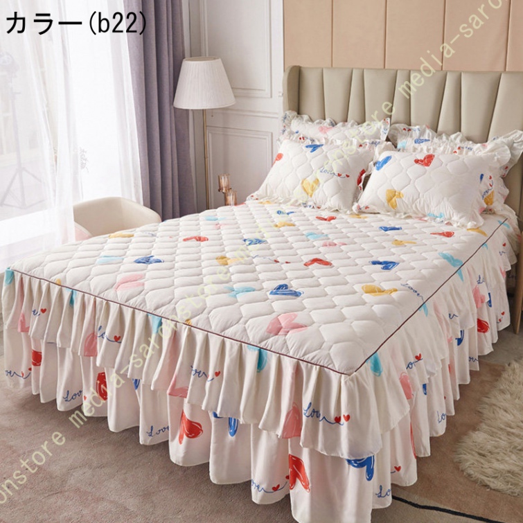 ベッドスカート 綿 マットレスカバー フリル付き 敷パッド一体型 キルティング フリル付き 中綿 ベッドカバー マットレスカバー ベッドシーツ 柔らかい