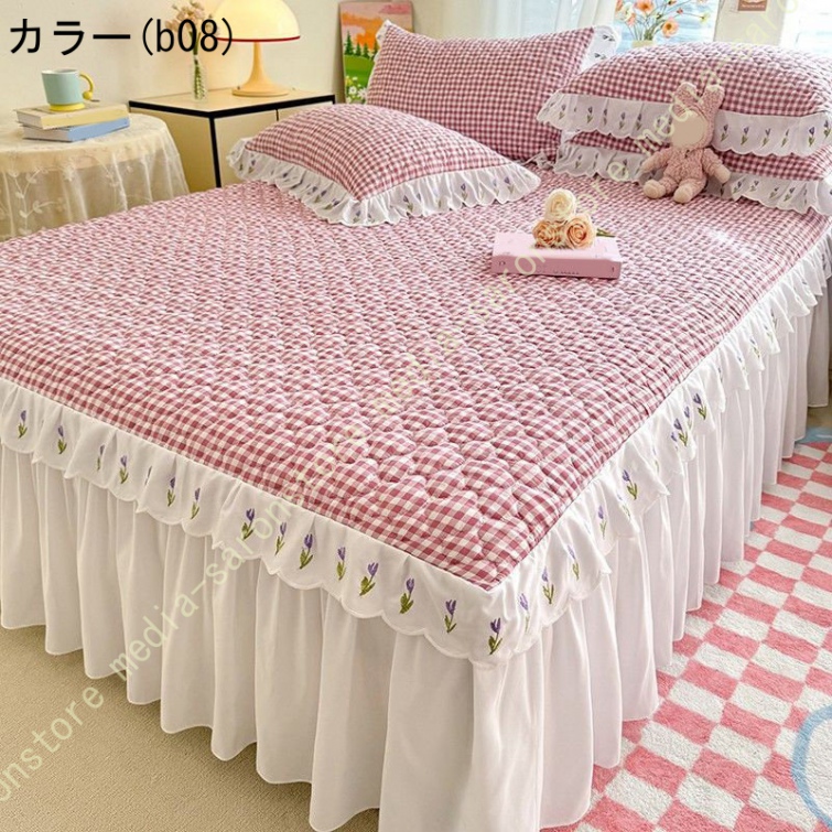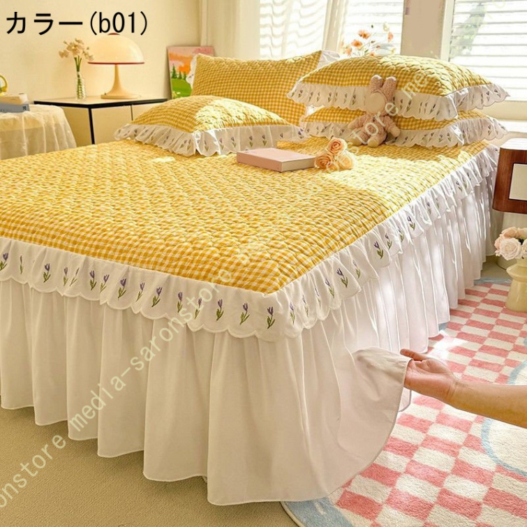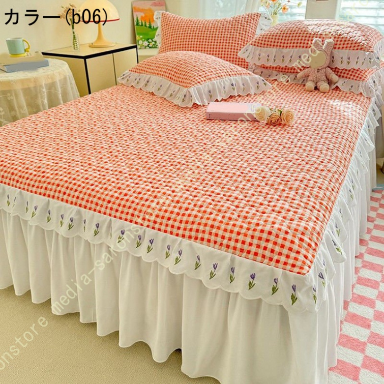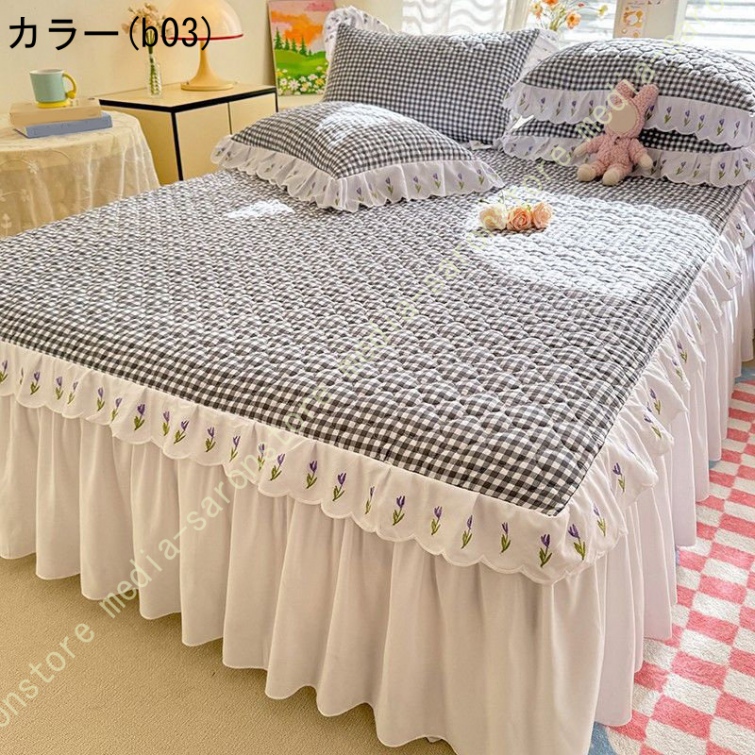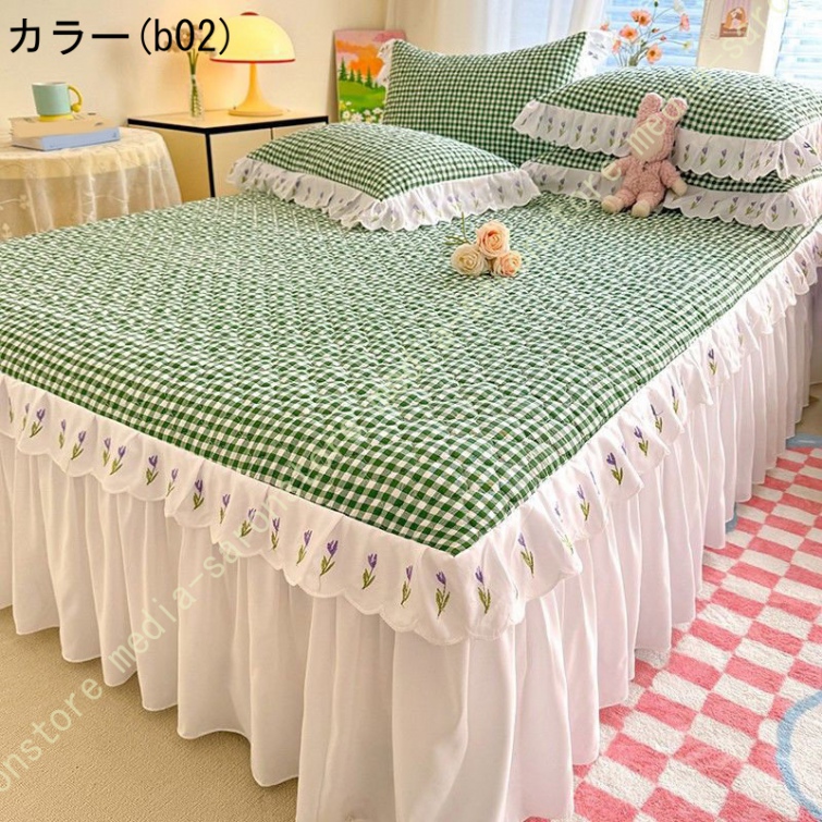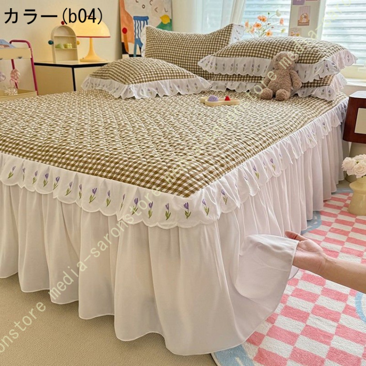 ベッドスカート 中綿 セミダブル ホワイト セット 洗いざらし 柔らかい レース付き ダブル セミダブル キング 敷きシーツ 優雅 きれいめ エレガント 上品