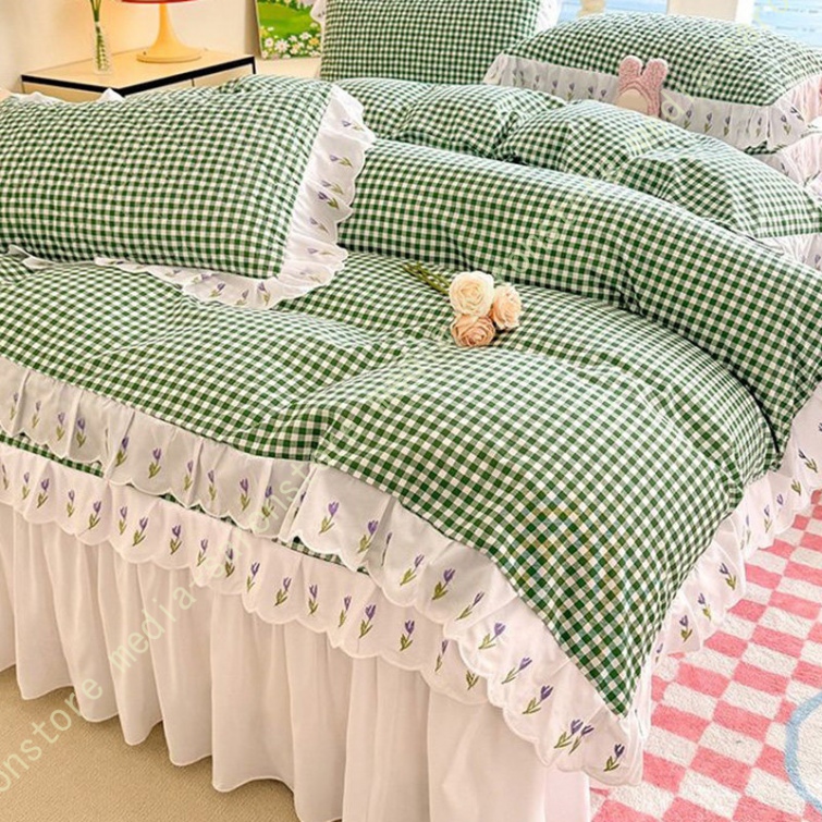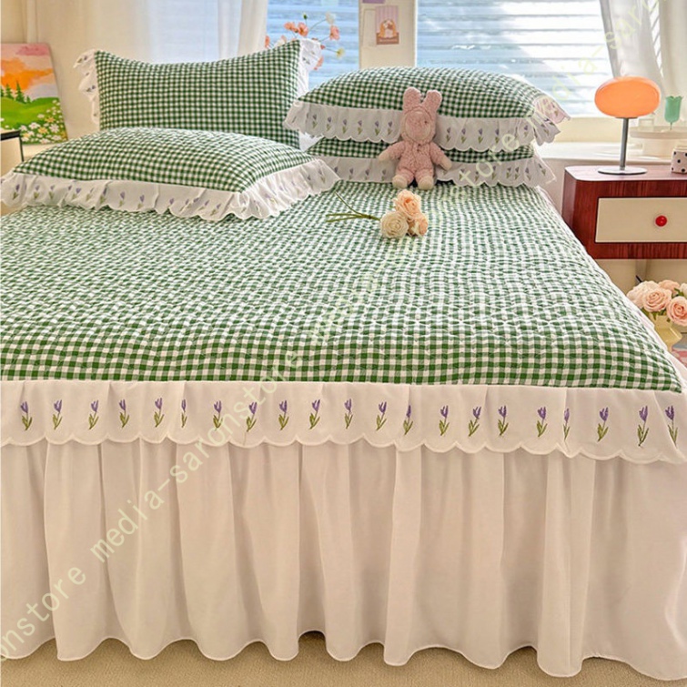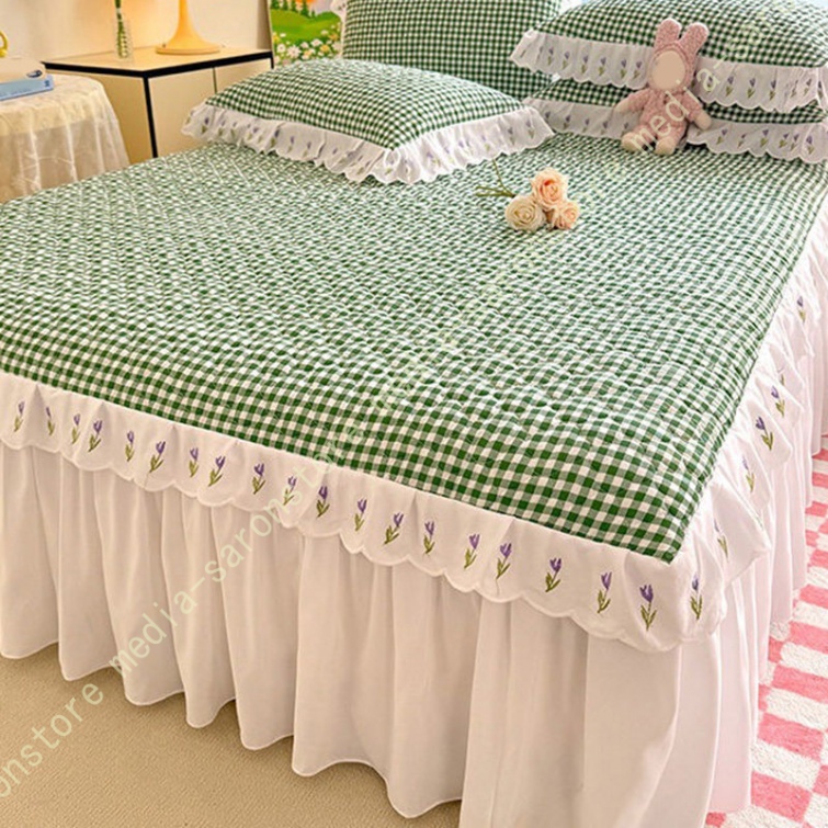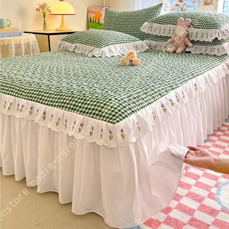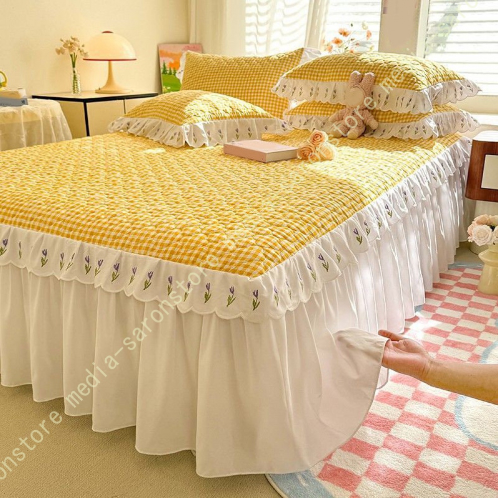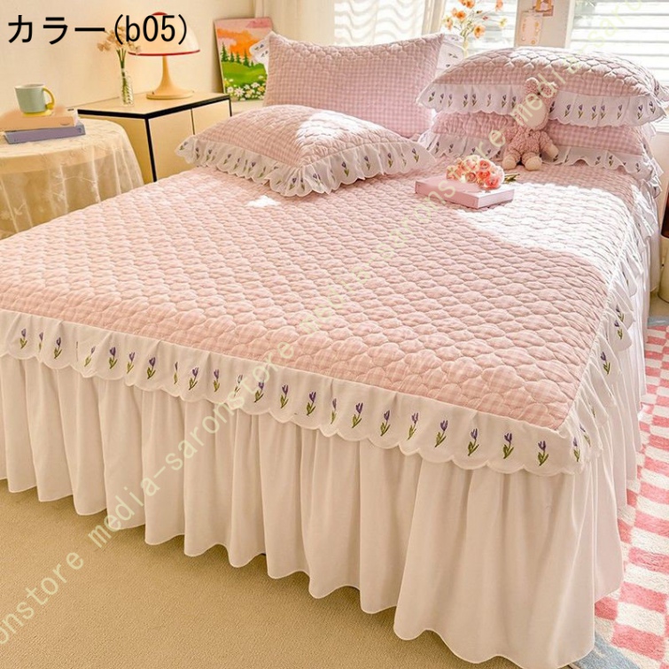 ベッドスカート 中綿 セミダブル ホワイト セット 洗いざらし 柔らかい レース付き ダブル セミダブル キング 敷きシーツ 優雅 きれいめ エレガント 上品