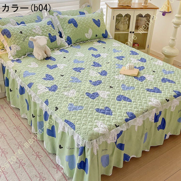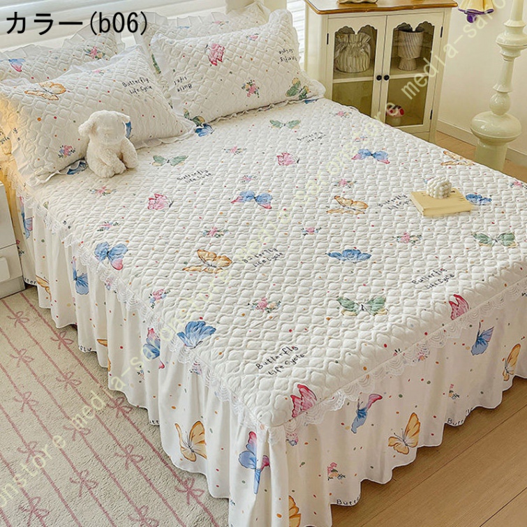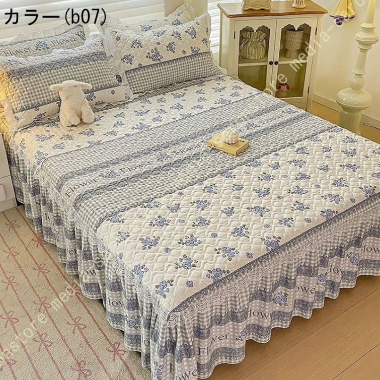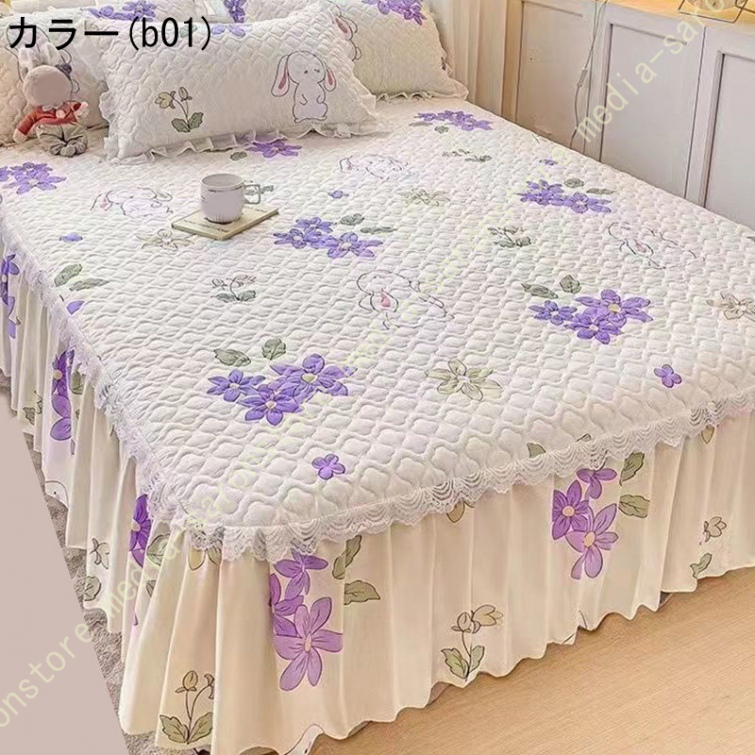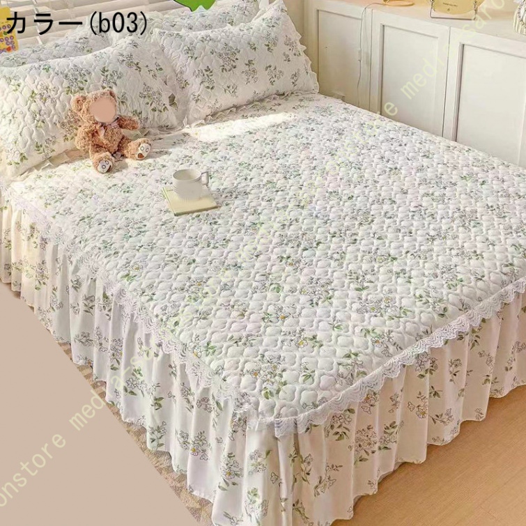 ベッドスカート 中綿ベッドスカート キルティング フリル 姫系 可愛い ベッドカバー セミダブル ダブル ベッドスプレッド 寝室 ホテル 寝具カバー 洗える