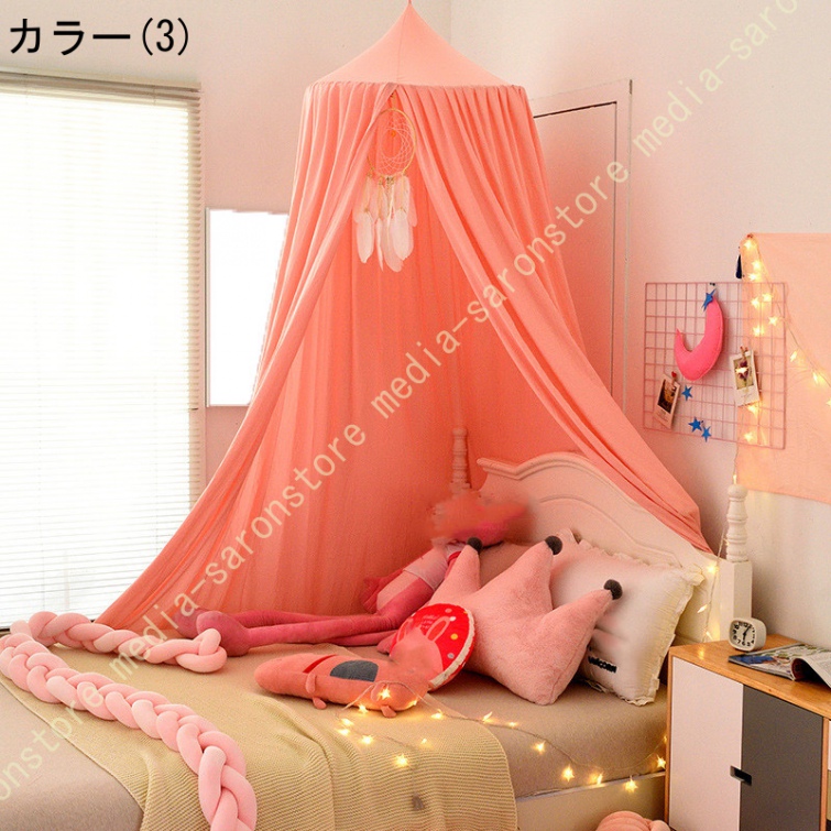 ライトピンク ベッドキャノピー 女の子用 ラウンドドーム蚊帳 プリンセスキャノピーカーテン 女の子用キャノピー 寝室の装飾 ハンギングキャッスル天井テント
