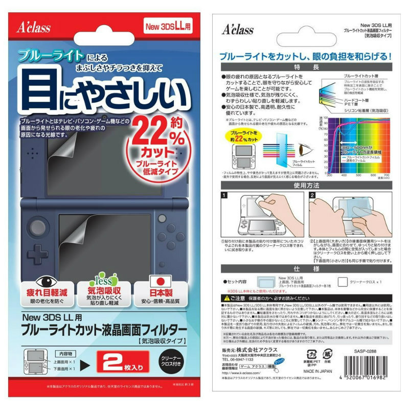 ■タイトル:New 3DSLL用ブルーライトカット液晶保護フィルター(気泡吸収タイプ) アクラス(SASP-0288)