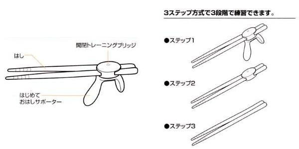 お子様の成長に合わせて、3段階にステップアップしながら効果的にトレーニングできるおはしです。おはしトレーニングのポイントをわかりやすく説明した、おはしのおはなし付き♪