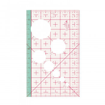 | カードサイズ(9×5.5cm)の方眼定規です。濃い色の生地や柄入りの生地の上でも、目盛が読み取りやすいグリーンゾーンが付いています。端から始まる0起点目盛は採寸に便利です。幅が広い方眼タイプで安定して平行線や垂線が引け、手に持ちやすく、楽に計測できます。ドール手芸、ポーチなどの小物制作や編み物、刺しゅうなどに。45度線バイアスラインがひけて、ボタンなどの作図や計測に便利な穴があいています。 小回りの利くカードサイズで持ち運びに便利です。 ・極端に折り曲げないでください。元の状態に戻りにくくなります。 ・アイロン等の熱で変形する場合がありますので、ご注意ください。 ・汚れをとる際は、シンナーやベンジン等の溶剤の使用を避け、中性洗剤をご使用ください。 |