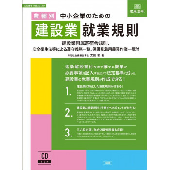 逐条解説書付なので誰でも簡単に必要事項を記入するだけで法定基準に沿った建設業の就業規則が作成できます。建設業ならではの問題点等を踏まえ、条文ごとに意味や注意点などをわかりやすく解説した小冊子と、実務ですぐに使えるWordでつくられた建設業用就業規則のひな形をCD-ROMに収録しています。