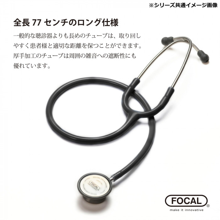アルミニウム製チェストピースにフィンガーシェイプデザインを採用し、指2本で挟んで聴診でき、チェストピースをつままずに安定した密着と雑音を抑えたクリアな聴音を実現。非常に柔らかなシリコン素材のスムースフィットイヤーチップは長時間の装着でも耳に優しくフィット。ロングチューブ仕様で患者との適切な距離を確保し、現場での使いやすさにも配慮された設計。