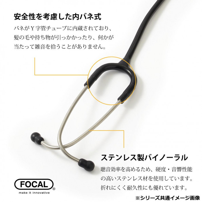 | 素材・材質 | チェストピース:ステンレス、Yチューブ:塩化ビニル、耳管:ステンレス、イヤーピース:シリコン |