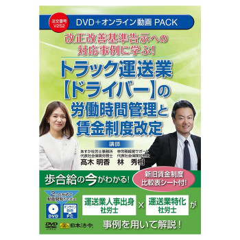| 仕様 | 【講師】 あすか社労士事務所 代表社会保険労務士 高木 明香 林労務経営サポート 代表社会保険労務士 林 秀樹 【目次】 Disc1 第1編 トラック運送業の労働時間管理編(約100分) 1:どのように労働時間を管理するのか? 2:ドライバーの労働時間管理(残業代と拘束時間) 3:労働時間を適正時間に合わせていくには? Disc2 第2編 トラック運送業の賃金制度改定編(約90分) 1:ドライバーの賃金制度見直しのポイント 2:賃金制度見直しの手順 3:賃金制度改定コンサルタント事例 【収録時間】 約190分 【収録資料】 新旧賃金制度比較表シート |