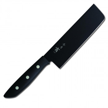 シリコンフッ素で刀身を黒く塗装したシックな色合いの包丁です。ハンドルには軽量で手に馴染む形状を採用しました。