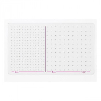 | ビーズ刺し子のステッチの前に正確な印を付けるためのプレートです。5mm幅は一分竹ビーズ(3mm)、8mm幅は二分竹ビーズ(6mm)のしるし付けに使うことが出来ます。ドットが正確に付けられるので、作品も綺麗に仕上がります。ブローチやポーチ、オーナメント作りはもちろん、洋服やバッグ、小物など既製品のアレンジも楽しめます。 9種類のステッチ説明入り 平山道(ひらやまみち)、矢羽根(やばね)、段つなぎ 柿の花、角十つなぎ(かくじゅう)、十の木(じゅうのき) 米刺し、蜀紅(しょっこう)、銭形刺し(ぜにがた) |