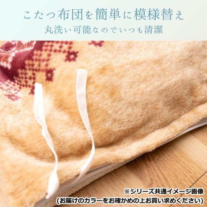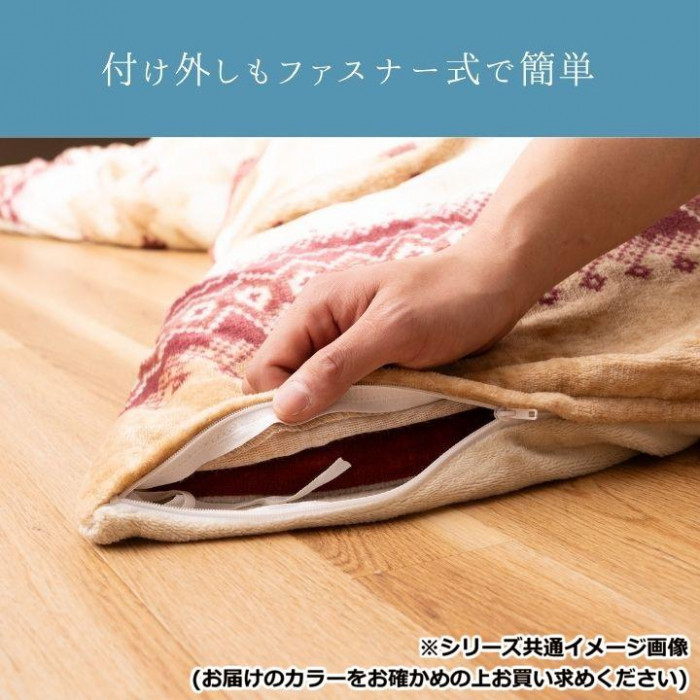 フェアアイル柄をモチーフにしたこたつカバー。柔らかなフランネル素材で、こたつ布団の上にかけるだけで使えます。取り外し不要で、模様替えも簡単。