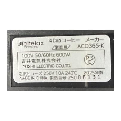 Abitelax コーヒーメーカー 4杯用 ACD365-K 代引き不可/同梱不可