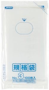 ジャパックス 規格袋 3号 ヨコ80×タテ150×厚み0.03mm 型番:K-03 1パック(100枚入)透明