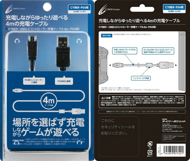 PS4用コントローラーを充電できる、長さ4mのUSB2.0対応ケーブル!