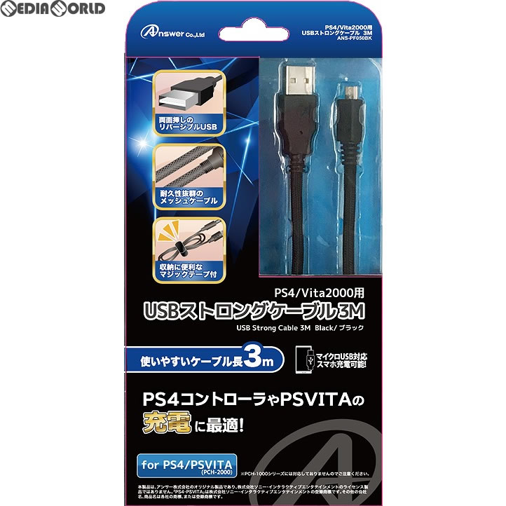 『新品』『お取り寄せ』{ACC}{PS4} PS4/Vita2000用 USBストロングケーブル 3M アンサー(ANS-PF050BK)(20170531)