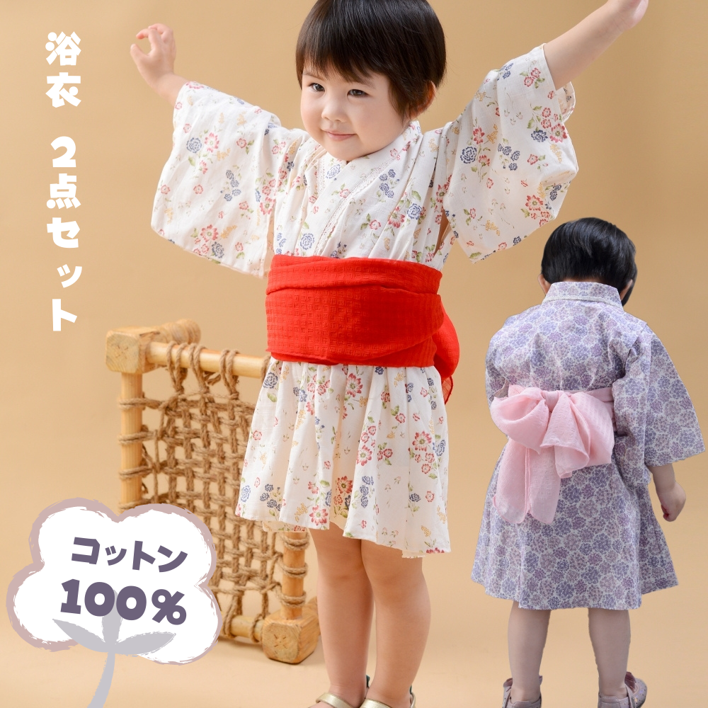 キュートでかわいい和風花柄の浴衣2点セット♪