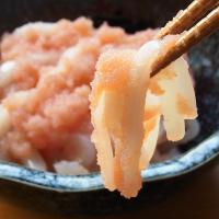 北海道産の真イカ/たっぷり500g前後を極細切りにし、1柵ずつグレース(氷の膜)をかけました。