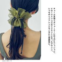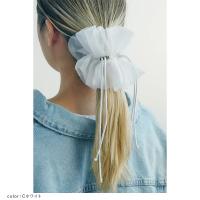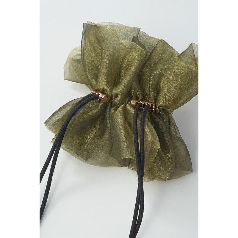 チュール生地でボリューミーに仕上げたシュシュに、ドローストリングがアクセントになったデザイン。