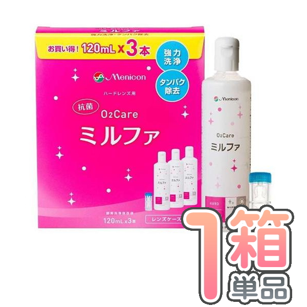 洗浄・保存・タンパク除去まで1本でできるメニコン「抗菌O2ケアミルファ」なら、 高い洗浄効果はもちろん、さらに抗菌成分配合でより清潔・快適なアイライフをサポートします。