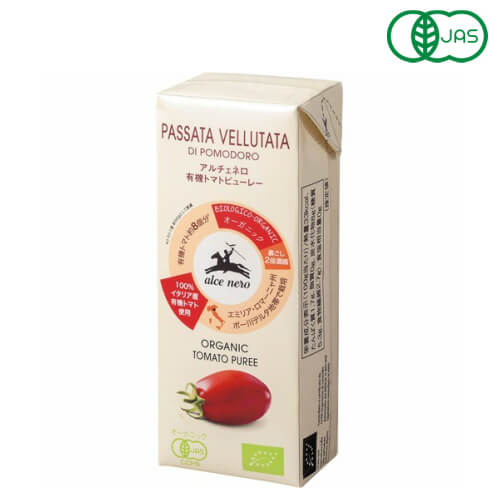 アルチェネロ 有機トマト ピューレー200gは、イタリア産有機トマトが8コ分ギュッと詰まった2倍濃縮のピューレーです。