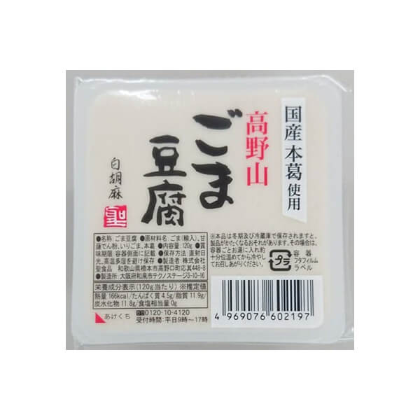聖食品の高野山胡麻とうふは高野山に昔から伝わる製法と最新技術の粋を凝らした、胡麻の濃厚なお味と香りがお口の中で広がる滑らかな胡麻とうふです。