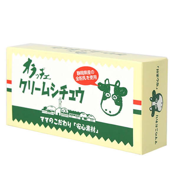 国産の小麦粉に、国産牛の牛脂、山形県産の鶏ガラから作ったチキンエキスなど、シンプルな原料で、素材が持つうま味を活かして作りました。ミルクのコクの素となる全粉乳は、地元・丹那の新鮮な生乳をたっぷり使用しています。