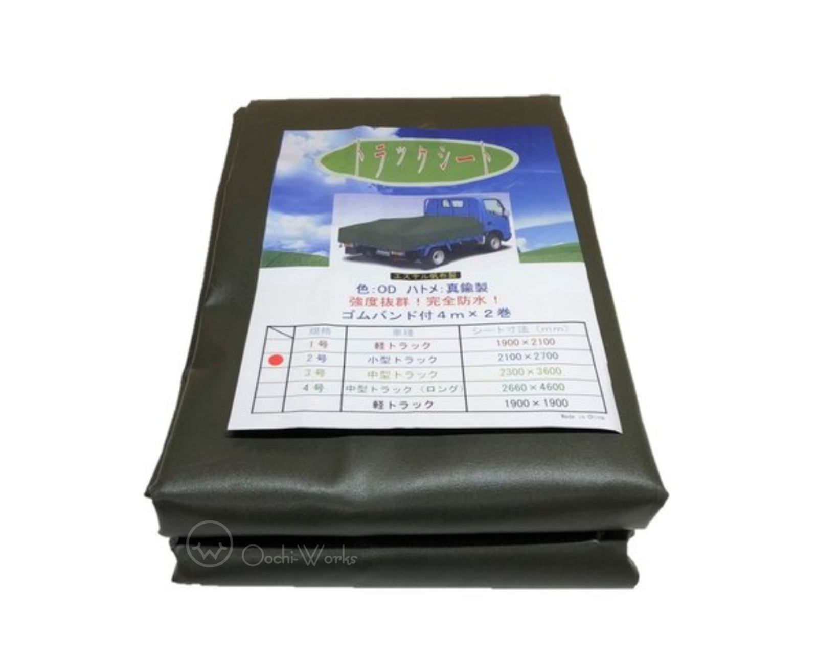 トラックシート OD 2号 2.1m×2.7m コードゴム4m×2本付き ダブルキャブ 国防色 エステル帆布 荷台カバー 荷台シート 送料無料