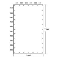 【ハトメ】周囲32ヵ所 3.6m方向600mmピッチ 7.5m方向750mmピッチ 真鍮ハトメ