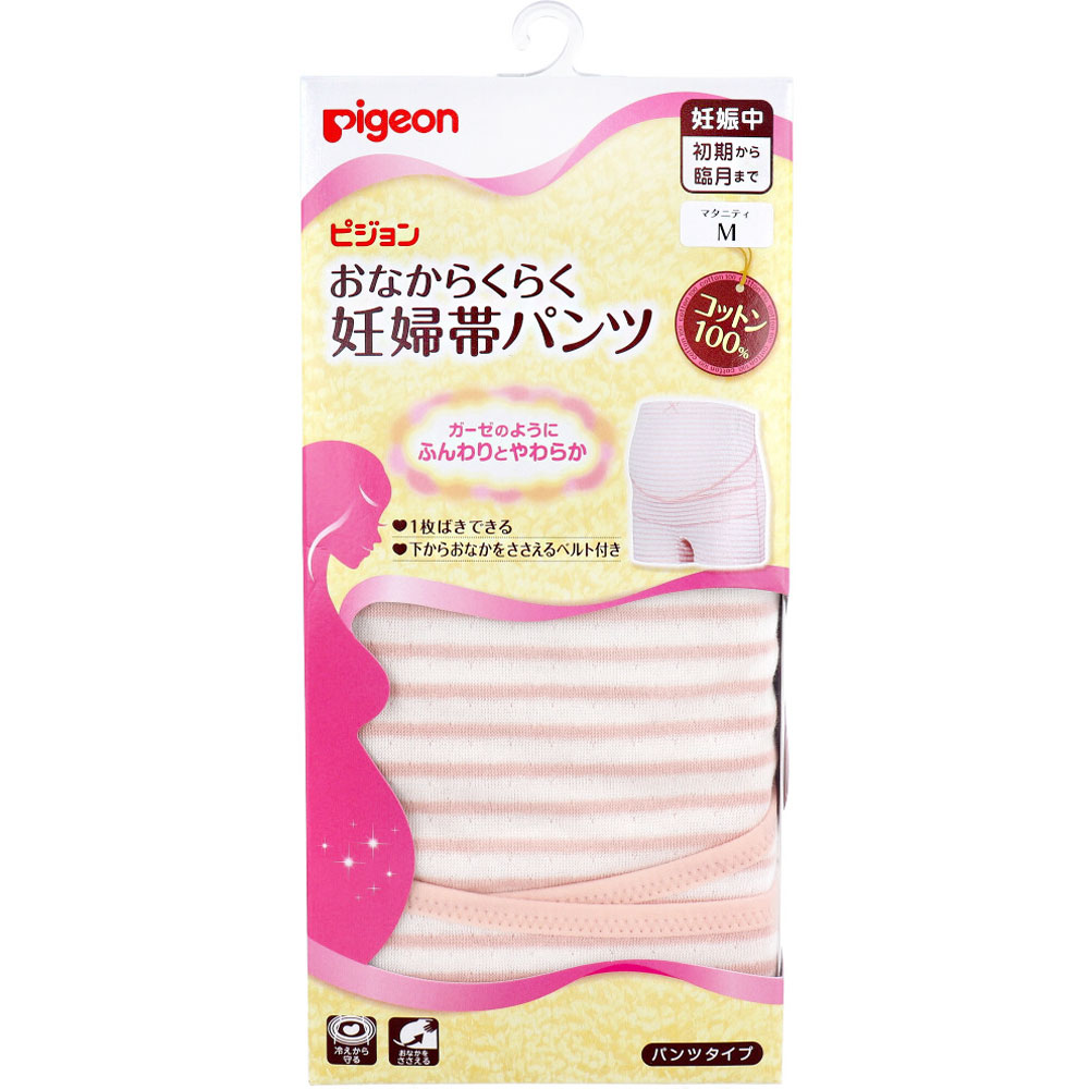 【商品仕様】【素材】綿100%【サイズ】★マタニティM腹囲:78〜100cmヒップ:87〜100cm★マタニティL腹囲:88〜110cmヒップ:92〜105cm※サイズが両方にまたがる方は大きいサイズをお選びください。【注意事項】【使用上のご注意】・目的の用途以外には使用しないでください。・からだに合ったサイズを選び、正しく着用してください。・着用中に気分がすぐれなくなった場合は、ただちに使用を中止してください。・着用する部位に炎症、キズなどの異常のあるときは使用しないでください。・万が一、かぶれなどの異常があらわれた場合はすぐに使用を中止し、医師にご相談ください。【メーカ】ピジョン株式会社【生産地】中国